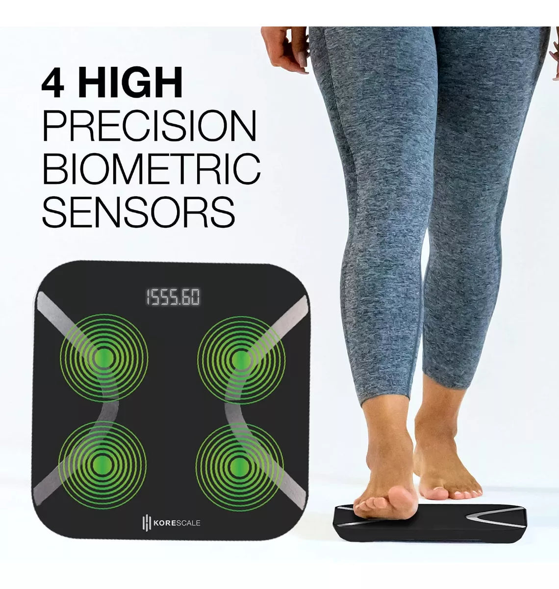 Seguimiento de 14 métricas de salud: la báscula digital Korescale Gen 2 para el peso corporal monitorea 14 métricas de salud clave que incluyen grasa corporal, IMC, grasa visceral, niveles de agua,