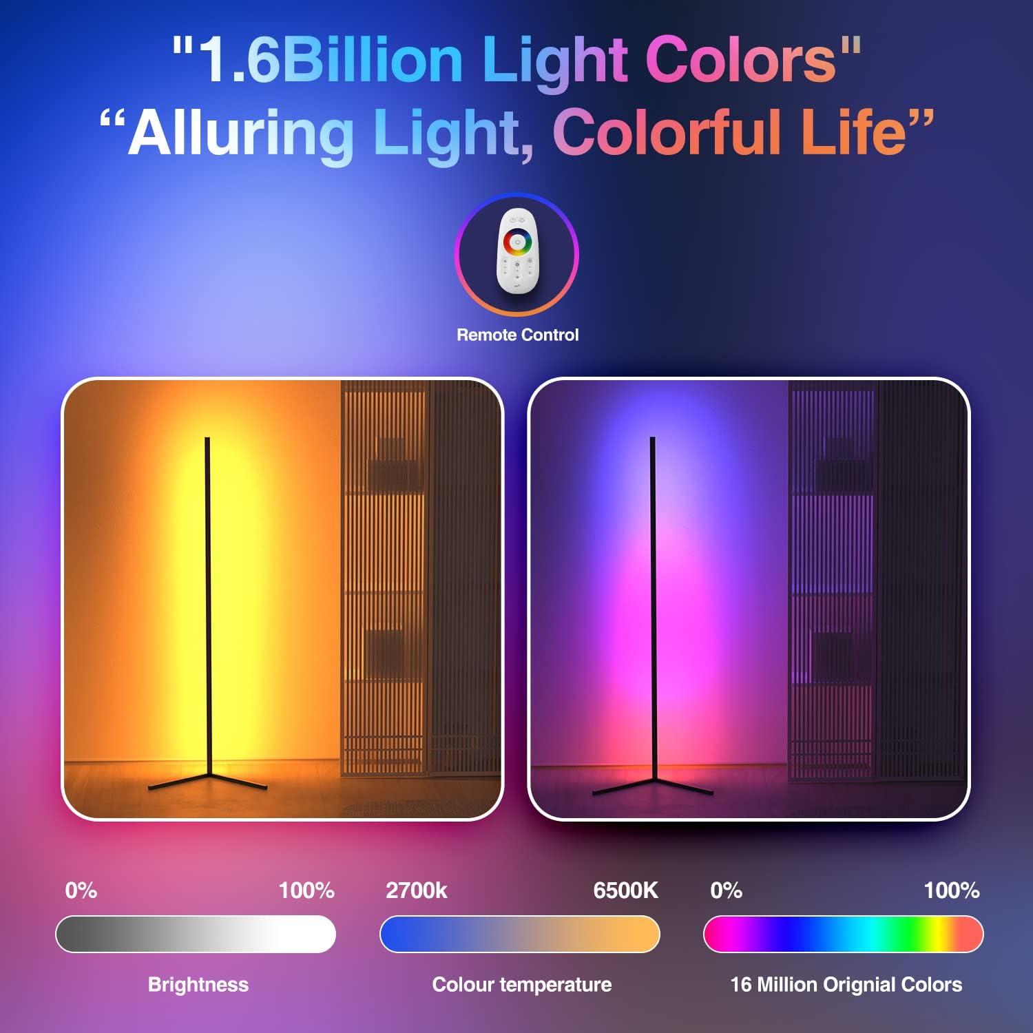 - Luz seductora, vida colorida: la lámpara de pie LED tiene 16 millones de colores. 84 luces LED de alta calidad soportan 2200k-6500k blancos cálidos/fríos y 1500 lúmenes de brillo. Explora más combinaciones de colores en esta lámpara de pie para vestir tu vida.