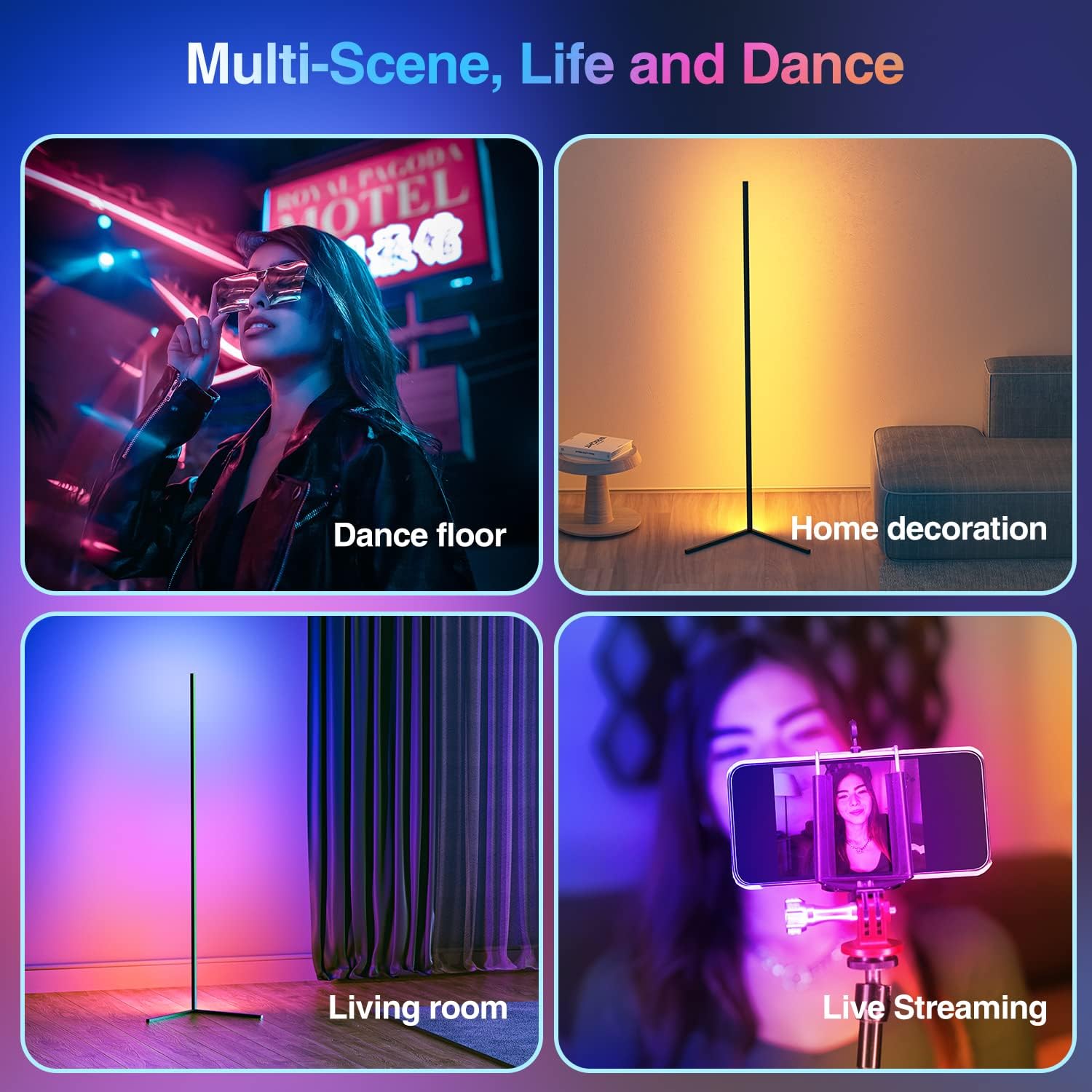- Multiescena, vida y baile: fiesta, cena, sala de estar, dormitorio... Benefíciese de la luz atractiva y los modos ricos, la lámpara que cambia de color acompaña cada detalle de su vida.