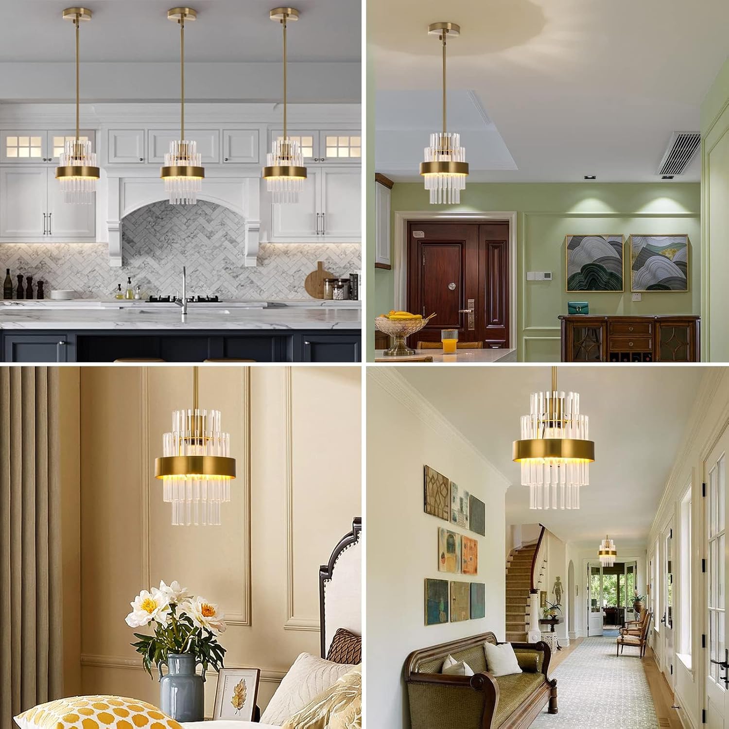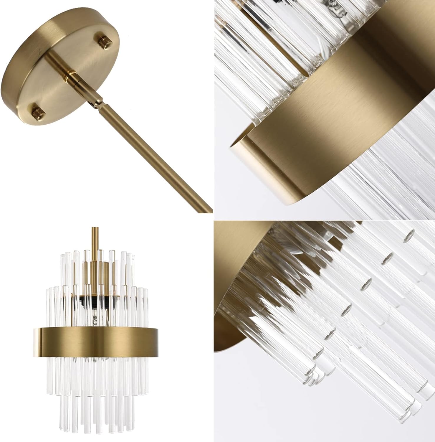 - Concepto de diseño moderno: La combinación de varillas de vidrio transparente y anillos exteriores de metal proporciona una rica sensación de capas, que también se ve exquisita y hermosa cuando las luces están apagadas. Los diseñadores esperan que esta lámpara de araña de estilo moderno no solo ilumina tu hogar, sino que también añade un efecto decorativo más hermoso a tu hogar.