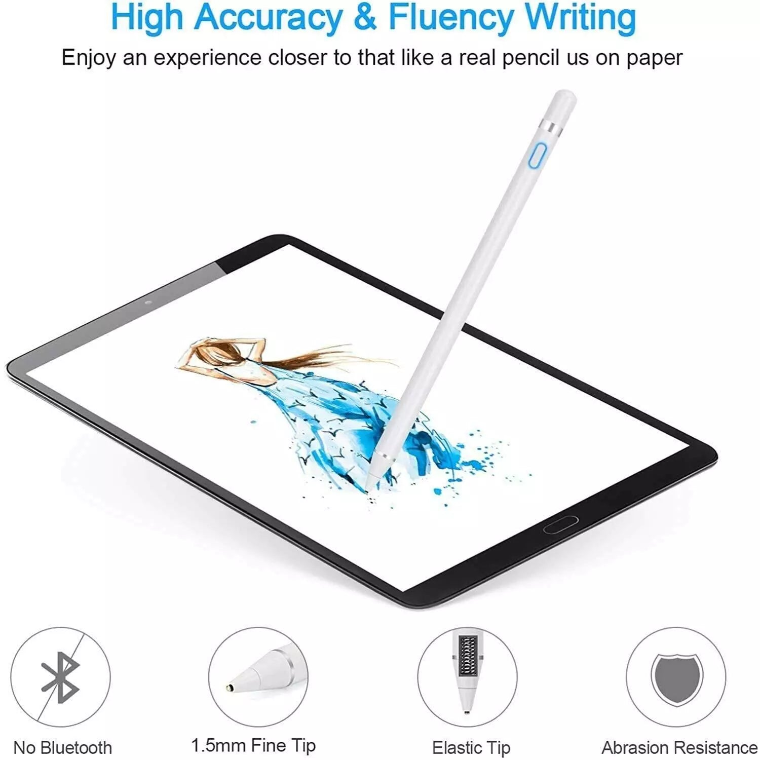 Punta sensible y precisa: Este lápiz óptico con punta de 1,5 mm de diámetro proporciona mayor precisión y una sensación realista al crear.