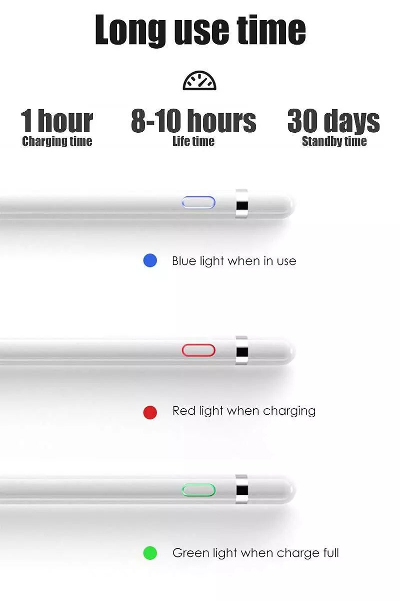 Batería de larga duración: Este lápiz óptico se carga mediante el popular puerto de carga tipo C de los últimos años y proporciona hasta 10 horas de dibujo y escritura continuos. Configuramos la función de apagado automático de 30 minutos en la inactividad del lápiz óptico.