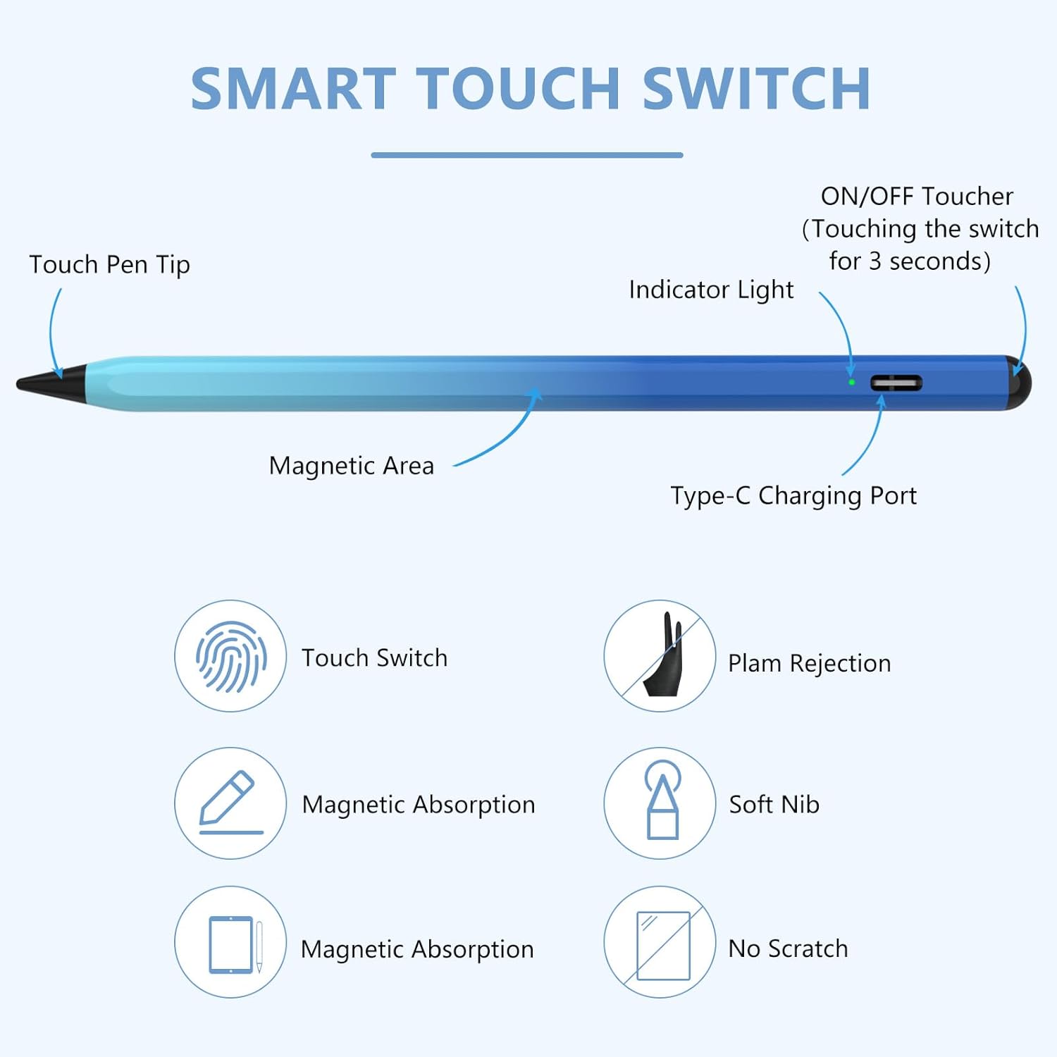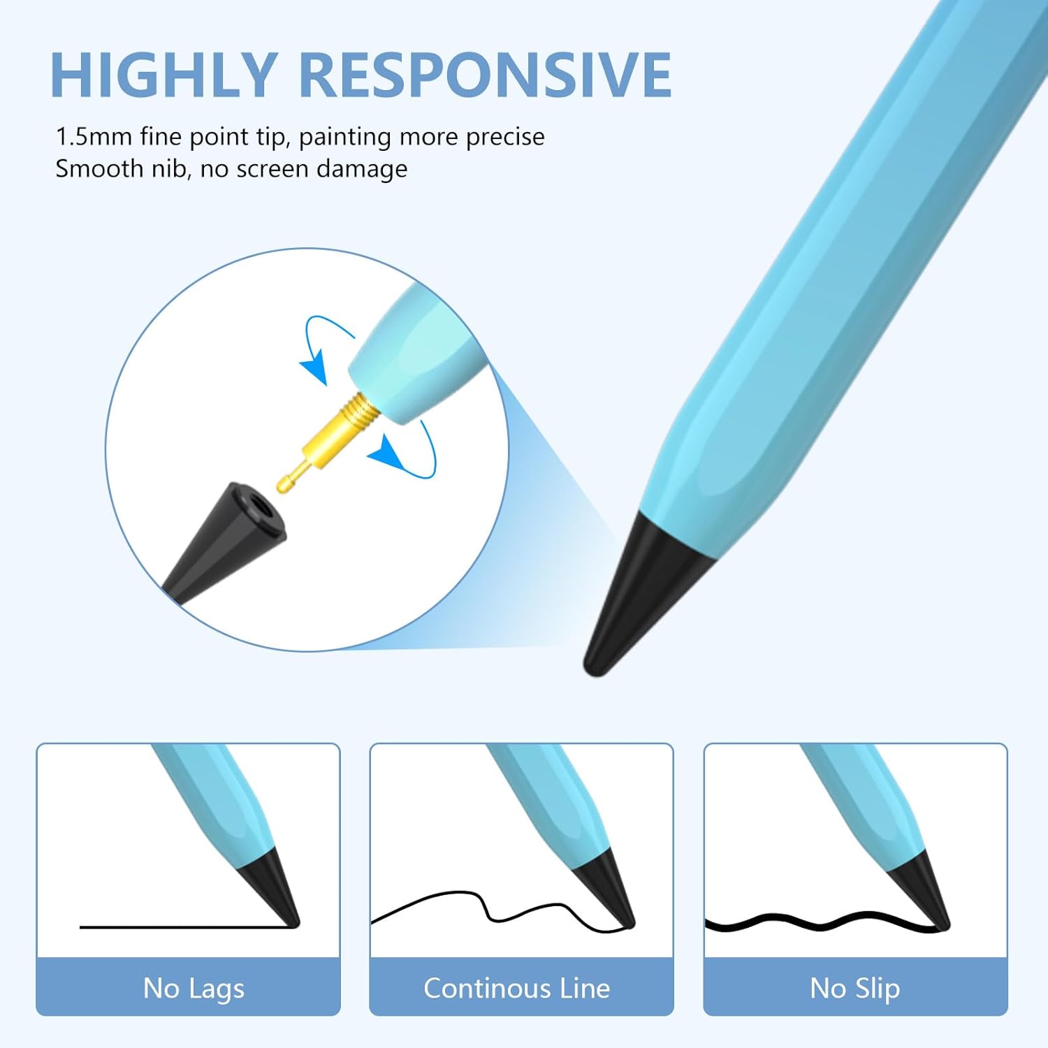 - Carga rápida y larga espera: este lápiz óptico soporta 12 horas de uso continuo y 180 días de espera a largo plazo para solo 1,5 horas por carga. Se apagará automáticamente después de estar inactivo durante 5 minutos para ahorrar energía