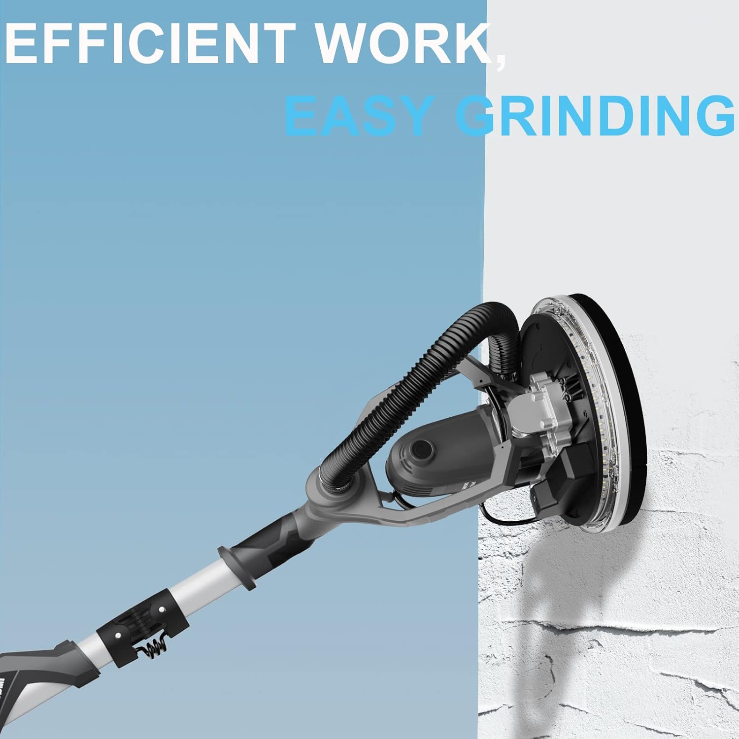 - Diseño flexible y de ahorro de trabajo: el cabezal de lijadora de paneles de yeso sin polvo es muy flexible y se puede girar libremente en múltiples ángulos. Esta lijadora de techo para paneles de yeso también está equipada con una varilla de extensión y mango auxiliar para un fácil manejo de superficies de trabajo más altas. El mango se puede extender de 1,1 a 1,65 metros