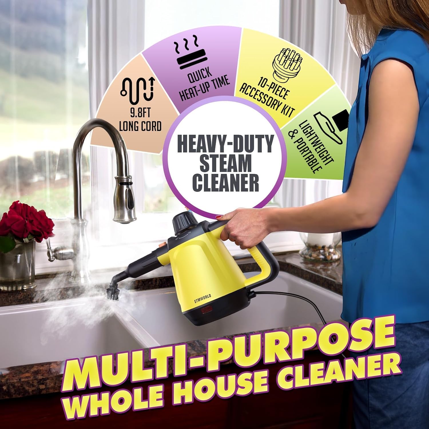 Limpiador de vapor de mano natural de múltiples superficies con 10 accesorios, limpiador de vapor a presión de 13 onzas multiusos bajo demanda para el hogar, vaporizador para limpieza de suciedad.