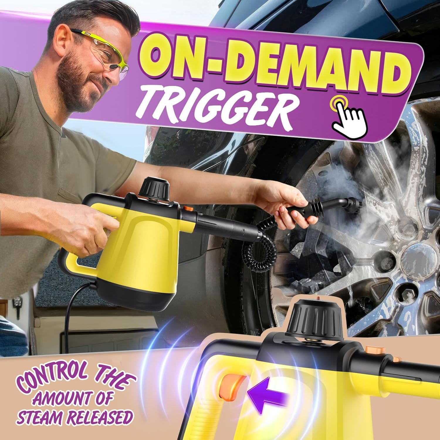 - Vapor fácil de usar: a diferencia del limpiador de vapor a presión, que puede ser difícil de controlar, nuestro limpiador de vapor de mano fácil de usar. Todo lo que necesitas hacer es verter agua en el tanque, enciende el vaporizador para calentar el agua, simplemente presiona el disparador de vapor para liberar vapor bajo demanda. El uso de nuestro limpiador de vapor hace que tus artículos y tu espacio de vida se vean impecables