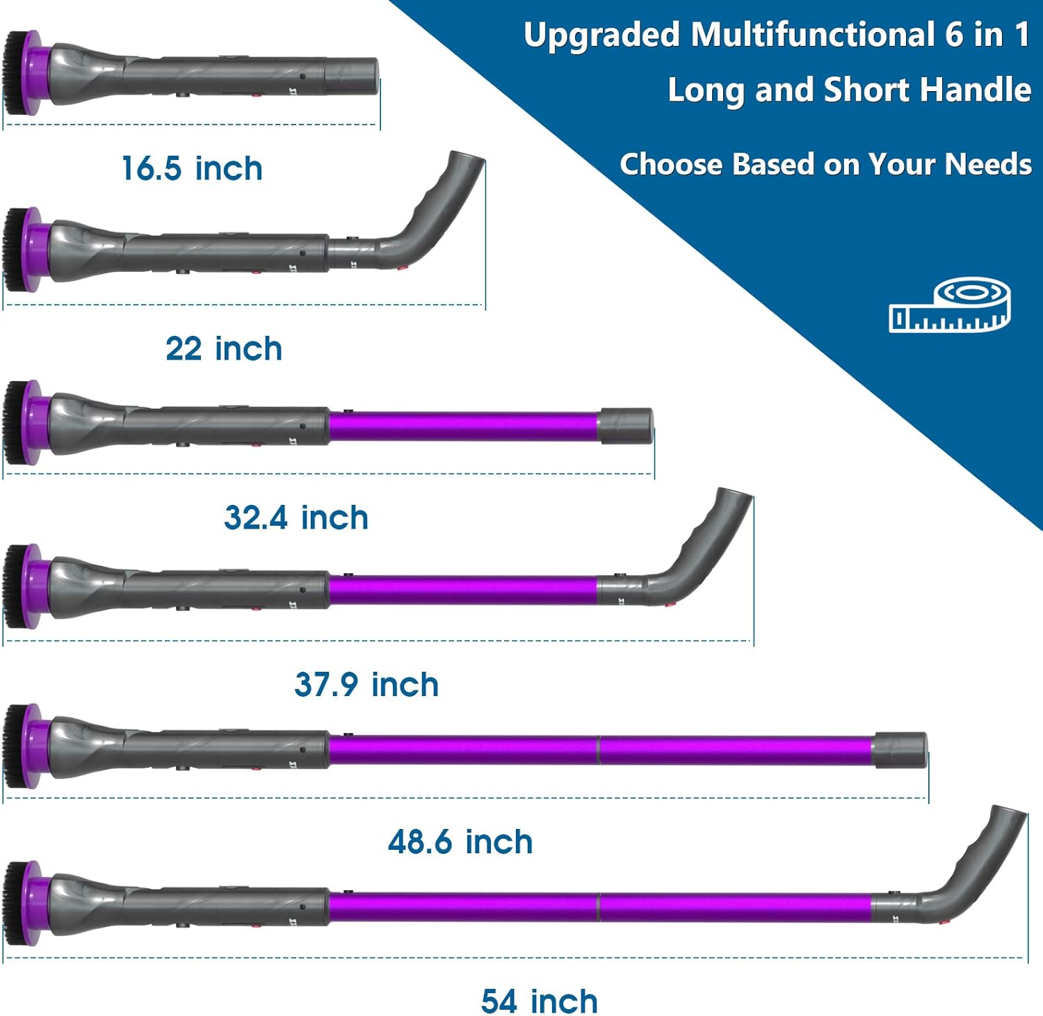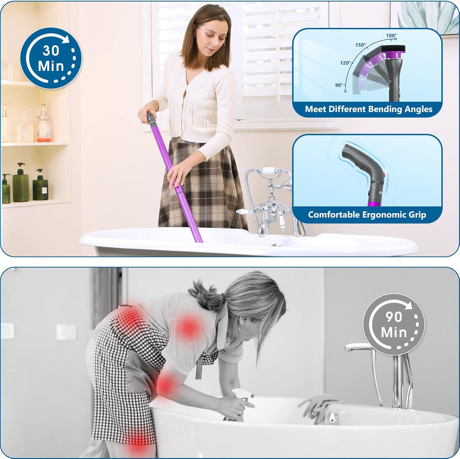 - 6 tipos de instalación. A diferencia de otros, hemos dividido el producto en tres asas, lo que hace que el limpiador eléctrico sea más multifuncional. Hay 6 tipos de instalación a elegir según tus necesidades. El mango corto es adecuado para limpiar la cocina, como fregadero, estufa, encimera e hijo. El mango largo puede limpiar profundamente el baño, la bañera, la lechada de azulejos y la ducha. Sin arrodillarse ni agacharse, lo que te da la máxima flexibilidad.