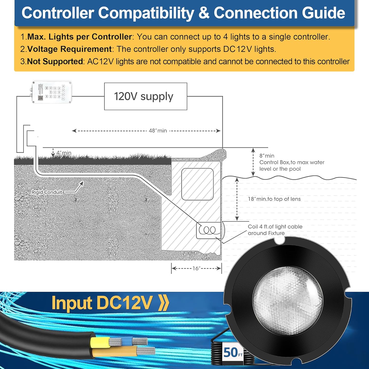 - Gestiona fácilmente tu iluminación con el control remoto incluido, funciona desde hasta 180 pies de distancia (pilas no incluidas). Seleccione entre una gama de modos estáticos y dinámicos, que ofrecen más de 16 colores, parpadeo, cambios de salto y opciones de un solo color. Transforma tu piscina en una experiencia visual vibrante