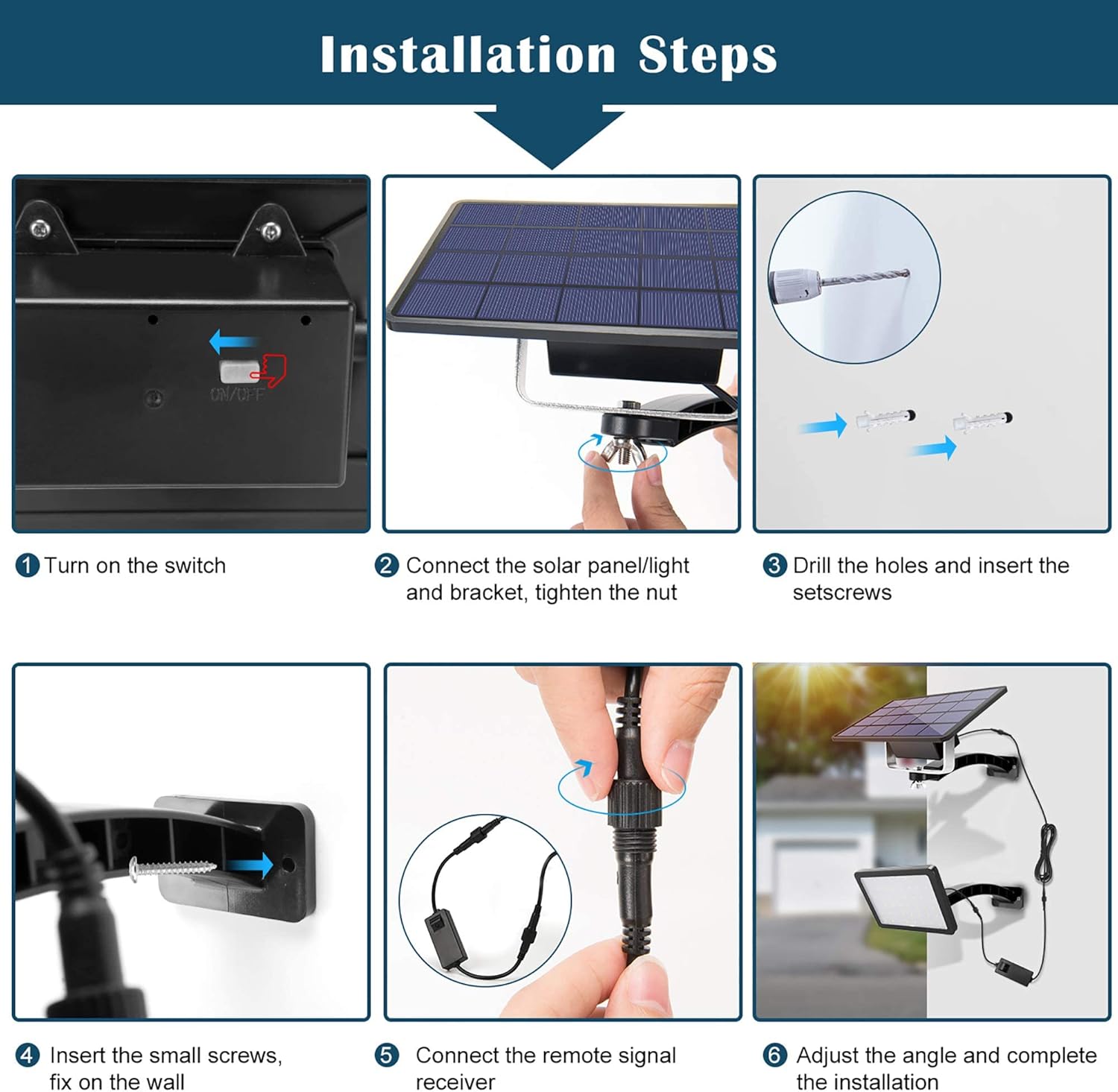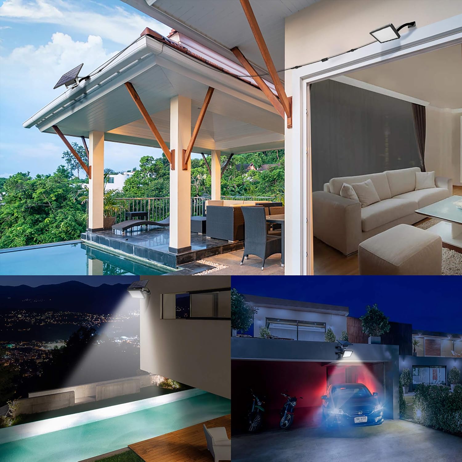 - Superbrillante: integrado con 48 LED ultrabrillantes, nuestro foco solar de pared es más brillante que otros, con un rango de iluminación de 120° a hasta 1000 lúmenes. El panel de la lámpara LED se puede girar horizontalmente para adaptarse a tus necesidades de iluminación de diferentes ángulos.