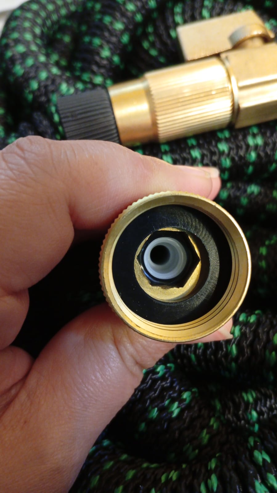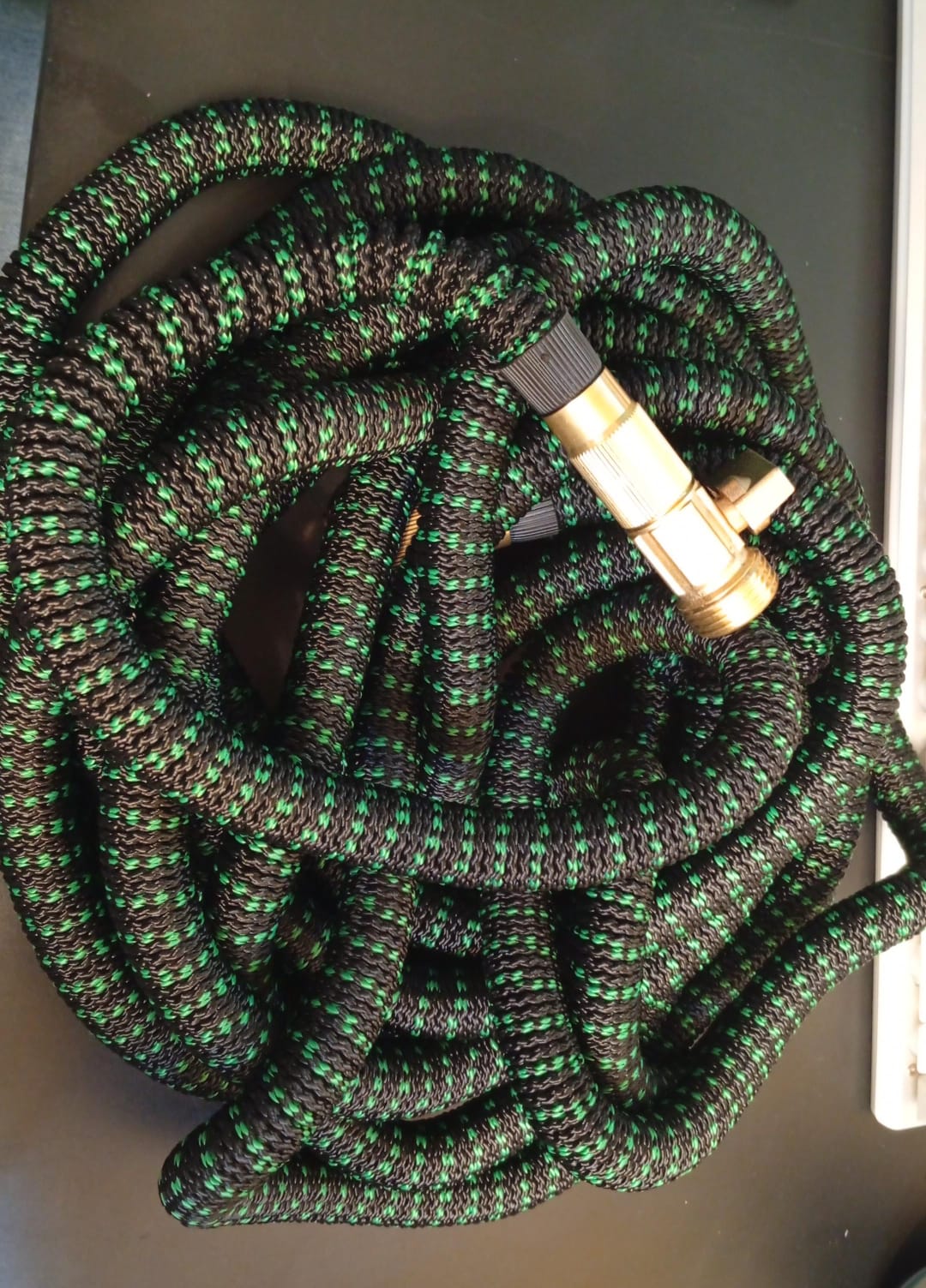 - Manguera Extendida: Esta manguera de jardín expandible puede aumentar a tres veces la longitud original bajo presión estándar, y acortarse a la longitud compacta cuando el agua está cerrada, lo que facilita el movimiento y almacenamiento en el jardín.