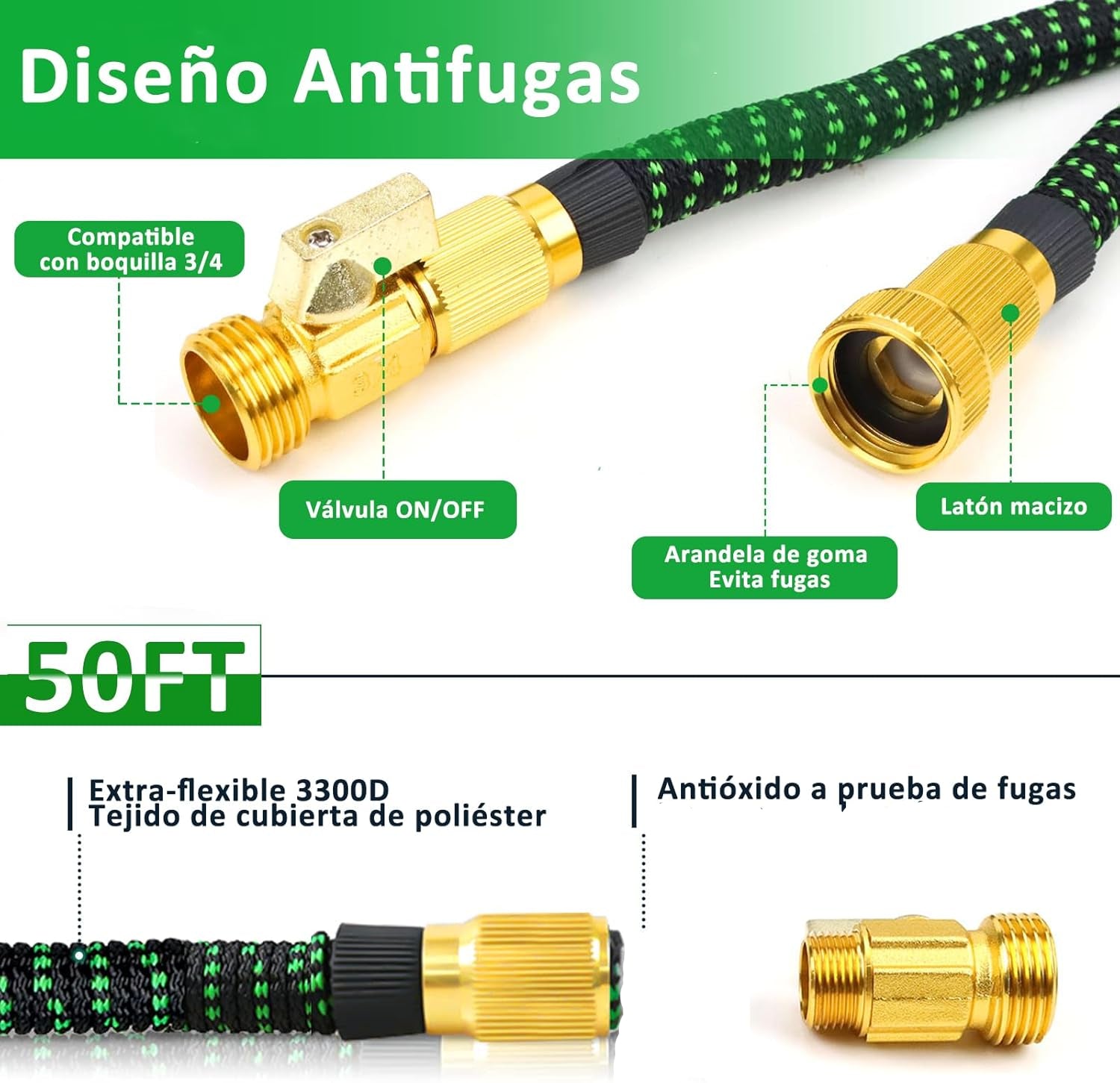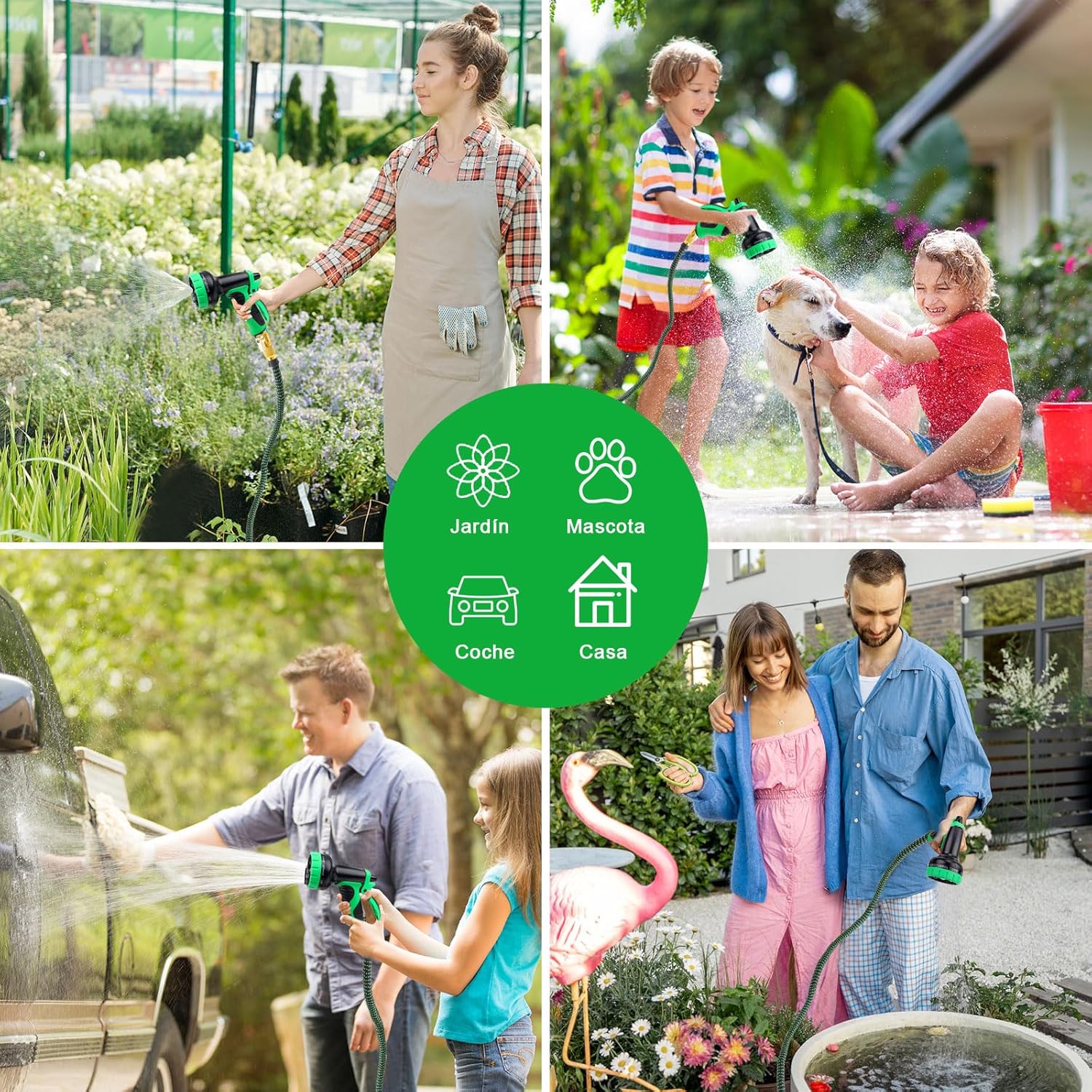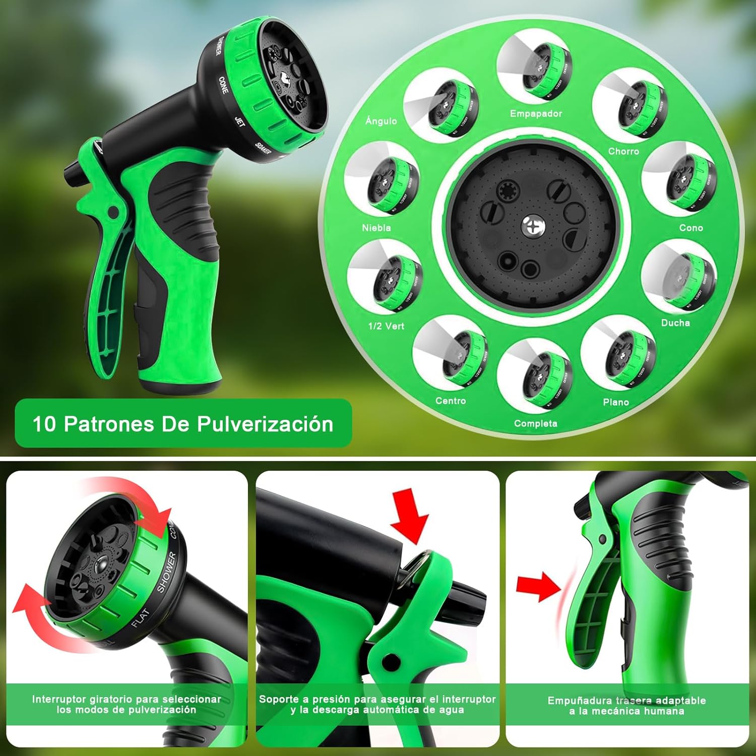 Manguera de Jardín, 75FT/22.5Mts, Expandible con boquilla 10 modos.
