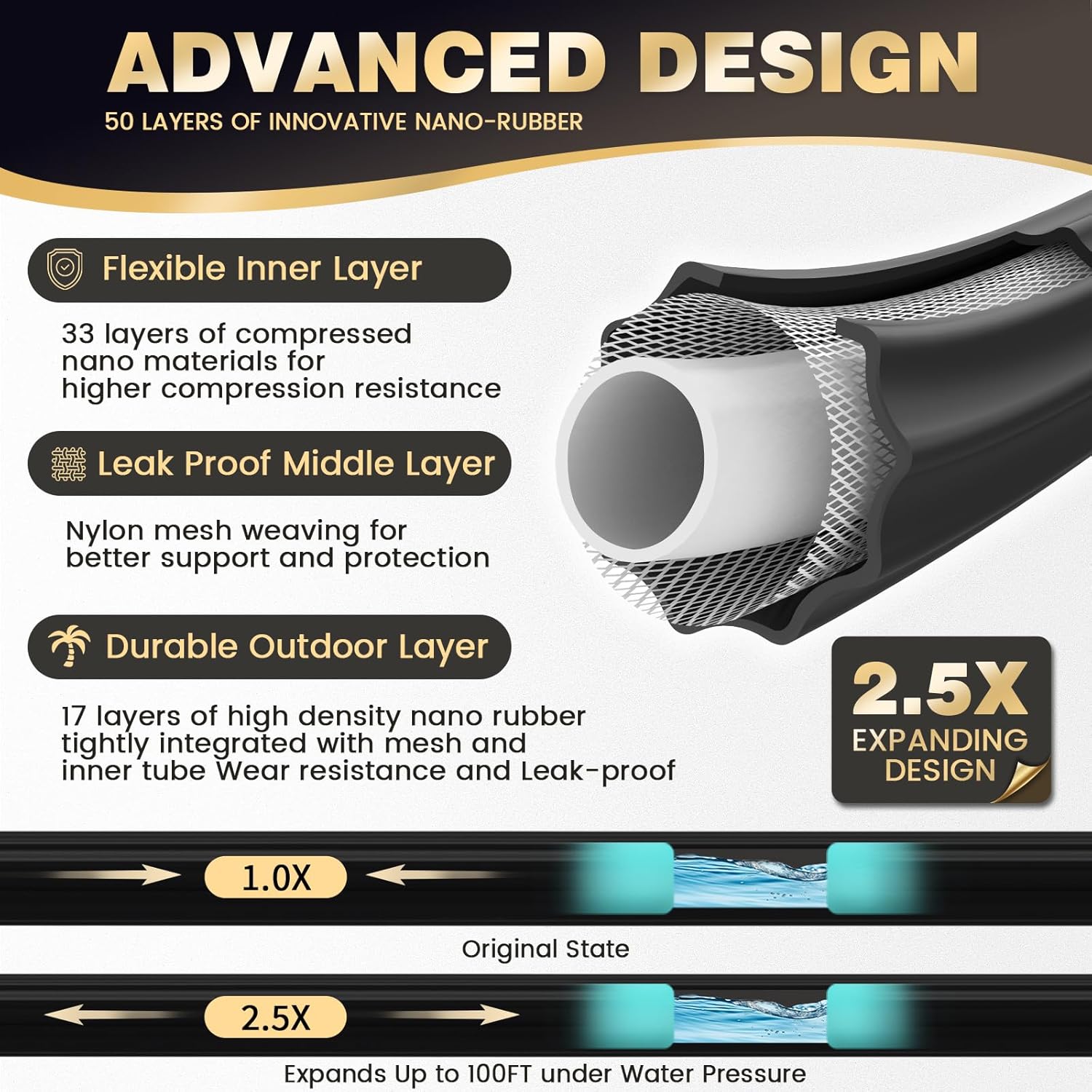 - Manguera de jardín extensible 2.5 veces: la manguera de jardín retráctil portátil negra de 100 pies puede expandirse hasta 2.5 veces su longitud original a 100 pies en segundos cuando se enciende la presión del agua. Nunca se enreda, gira o se dobla. Y se encoge en segundos a su tamaño compacto para un almacenamiento sin esfuerzo cuando la presión del agua se reduce, lo que te permite colgarlo perfectamente en un soporte y ahorrar aún más espacio. Nota: simplemente agua de las flexibles manguera de agua cuando no se utilice, guárdala en un lugar fresco y seco.
