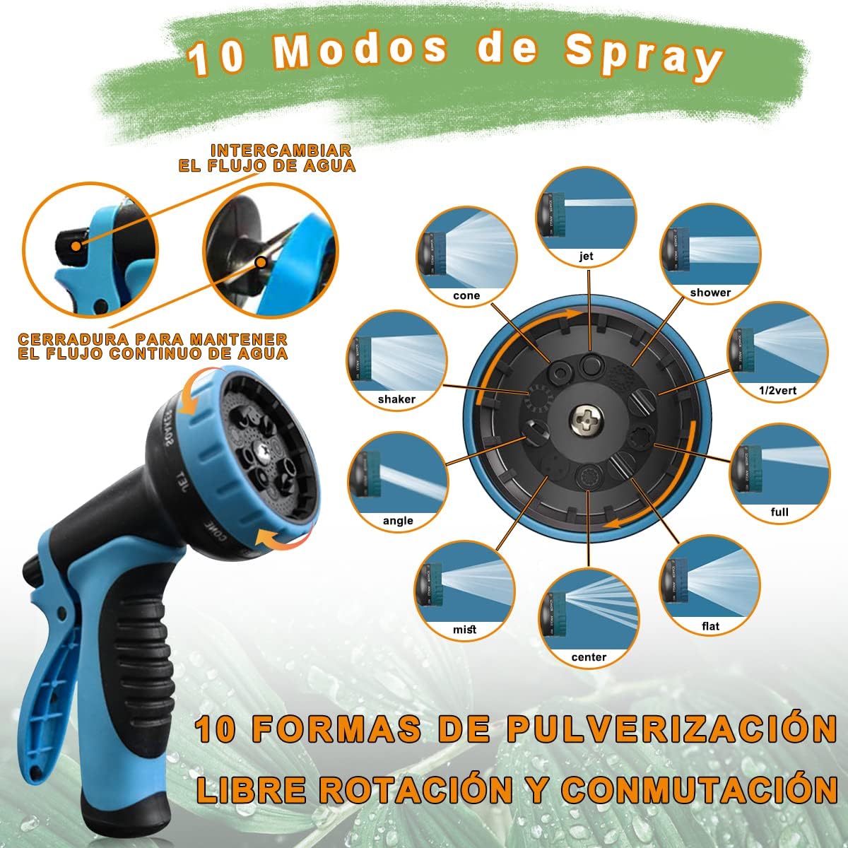 Manguera de Jardín Expandible hasta 15 Metros, Boquilla 10 modos.