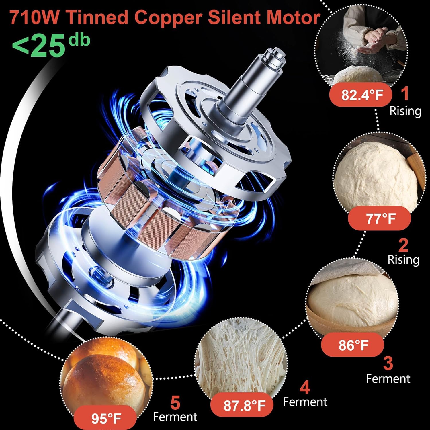 - 20 menús y 3 libras de gran capacidad e imán permanente de alta eficiencia de 710 W CC potente motor: la máquina automática de pan tiene 20 menús incluyendo sin gluten, pizza, masa, masa madre yogur, etc. La máquina de pan de 3 libras es perfecta para 6 a 7 personas. La máquina de pan de acero inoxidable se combina con una velocidad de hasta 300 rpm sistema de velocidad inteligente para amasar fácilmente varias masas de 3 libras, diseño de motor completamente cerrado, rodamientos de alta precisión de 1 mm, reducir el ruido en 25 db, un 80% más silencioso que otras máquinas de pan, 3 núcleos de chapa de acero de silicona integrados, disipación de calor eficiente.