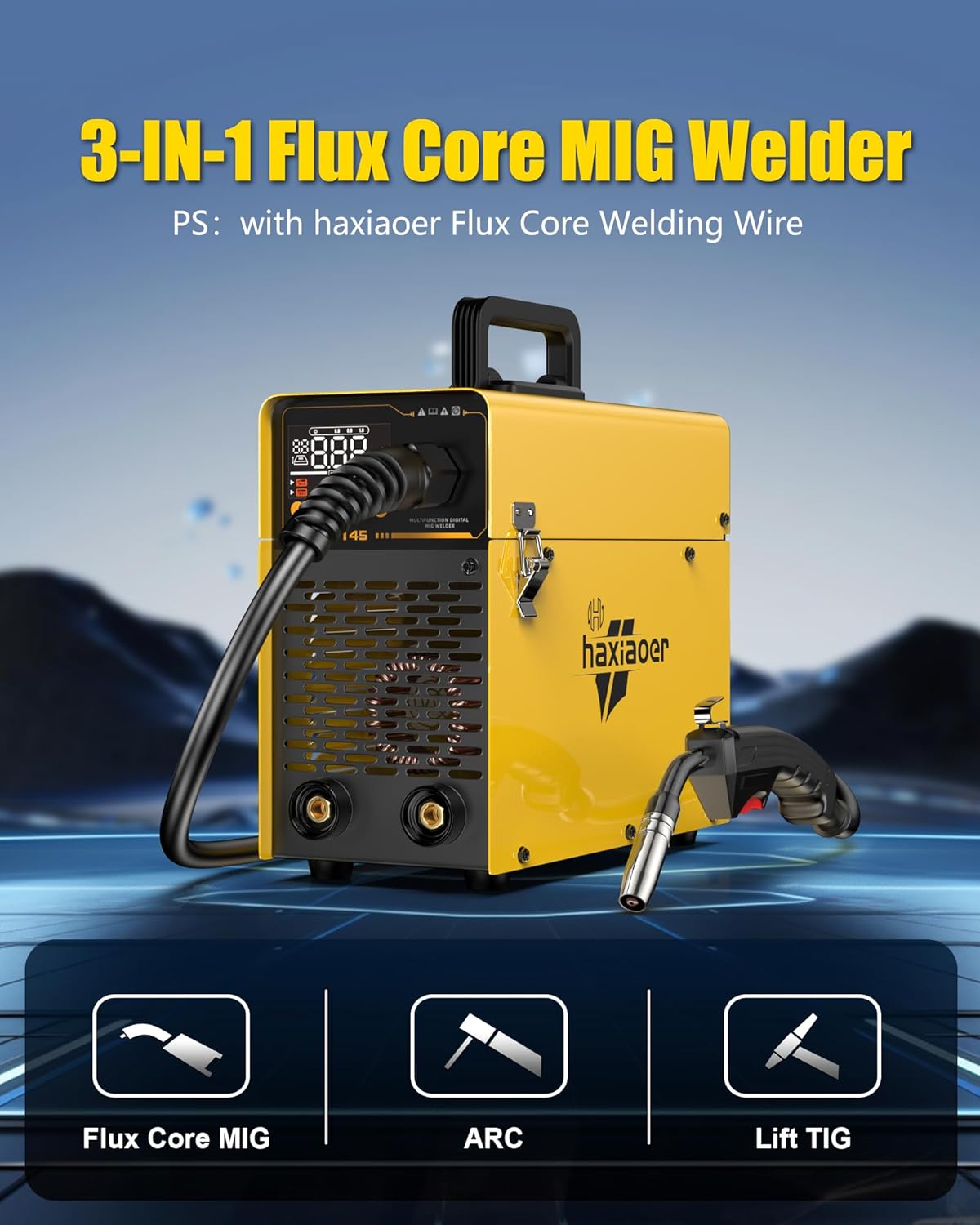 - Capacidad de soldadura multiproceso: el soldador mig haixaoer 145A ofrece una funcionalidad versátil 3 en 1, soporta mig sin gas con núcleo de fundente, tig de elevación (se requiere antorcha adicional) y soldadura por palo para satisfacer diversas necesidades de soldadura. Lo que lo hace perfecto para proyectos de bricolaje, reparaciones del hogar, trabajos agrícolas, aplicaciones automotrices y sitios de construcción. Cambia fácilmente entre la soldadura de núcleo de fundente y la soldadura de palo para satisfacer todas tus necesidades. Adecuado tanto para principiantes como para profesionales.