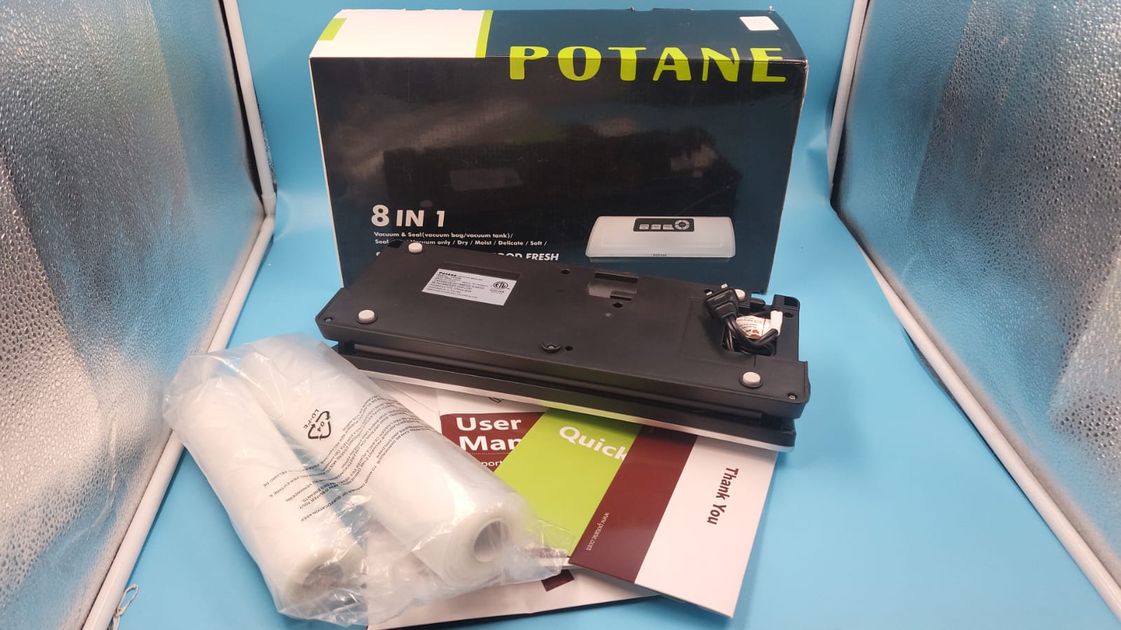 - Probado y certificado ETL: el sellador al vacío POTANE está certificado ETL por laboratorios de prueba reconocidos a nivel nacional (NRTLs) para el cumplimiento de las normas de seguridad de productos aplicables, la seguridad es nuestra prioridad número 1.