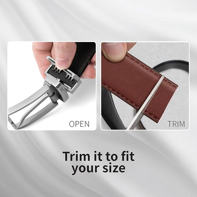 - Exquisito diseño italiano: Experimenta el pináculo del lujo con nuestro cinturón de carraca de piel italiano de alta calidad y cinturón de hebilla diseñado para una sujeción y liberación sin esfuerzo. La hebilla finamente elaborada ofrece un ajuste preciso para un ajuste perfecto y cómodo adaptado a tu cintura.