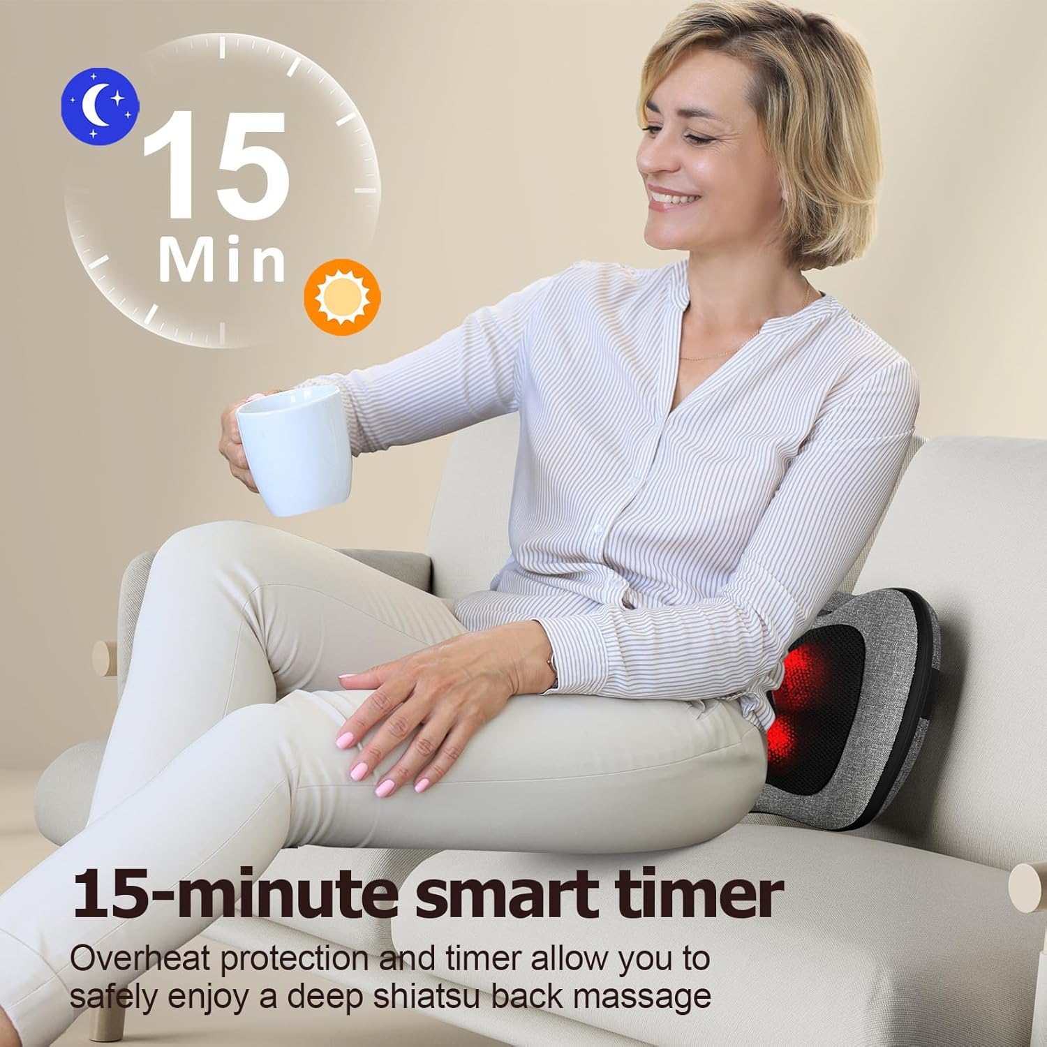 Alivia dolores musculares y dolores: masajeador de espalda 4 poderosos nodos de masaje Shiatsu de amasamiento profundo que pueden relajar y aliviar los dolores en tu cuello, parte superior de la espalda, hombros, cintura, medias, pantorrillas, pies, piernas y brazos, masajeador de espalda que te ayuda a liberar el estrés, aliviar los músculos doloridos y apretados y obtener alivio en todo tu cuerpo