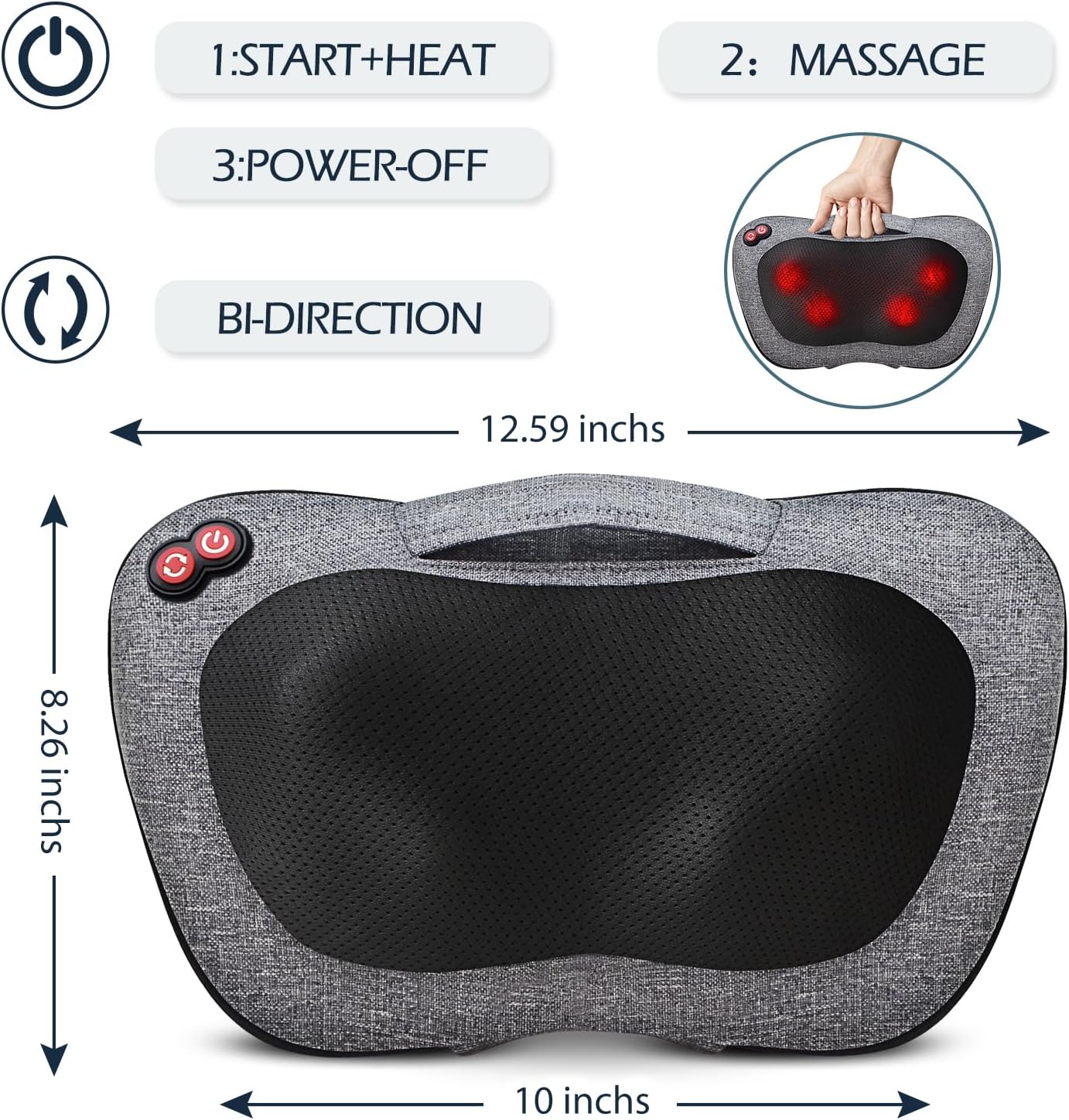 Regalo perfecto: un regalo de relajación para papá, mamá, mujeres, hombres, esposa, marido y todos tus seres queridos; es el regalo perfecto para cualquier día festivo, cumpleaños, aniversario u otras ocasiones especiales. El masajeador de espalda viene con un adaptador de CA que puede funcionar tanto en 100 V – 220 V como un adaptador de CC para el coche.