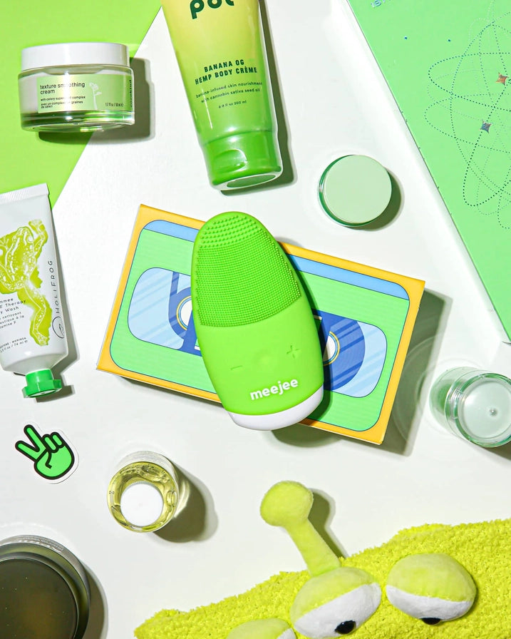 Ilumina tu rutina de cuidado facial con la colección neón de meejee. Nuestro galardonado masajeador facial limpiador ahora está disponible en tres colores de edición limitada que brillan en la oscuridad: verde eléctrico, naranja atardecer y ultravioleta. Todos los colores cuentan con nuestra misma silicona suave, impregnada con pigmento luminiscente de grado médico, aprobado por la FDA, que absorbe la luz y la emite lentamente con un brillo colorido. Es 100 % seguro para la piel y hace que las duchas nocturnas sean mucho más refrescantes. El masajeador facial limpiador neón de meejee utiliza los mismos pulsos sónicos para purificar los poros, revitalizar la piel y reducir los signos de la edad. También cuenta con un recipiente de masaje en la parte posterior para tonificar y masajear el rostro con sérums, aceites y humectantes para mejorar su eficacia.