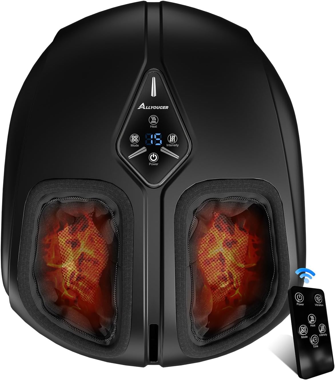 - Masaje profesional de pies: el masajeador de pies ALLYOUGER está meticulosamente diseñado con la aportación de más de 500 fisioterapeutas. Su exclusiva tecnología de amasado profundo y compresión 6D apuntan con precisión a puntos de acupuntura específicos, mejorando la comodidad del masaje de pies en un 50%.