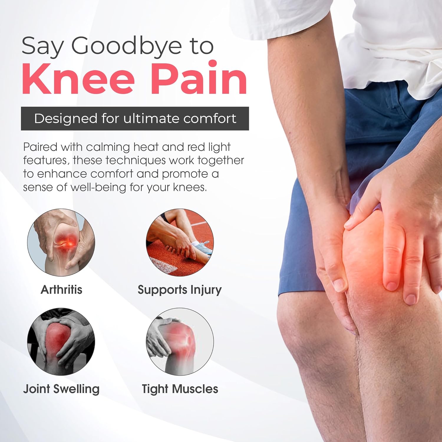 Masajeador de rodilla portátil 4 en 1, vibración y calor calmante.