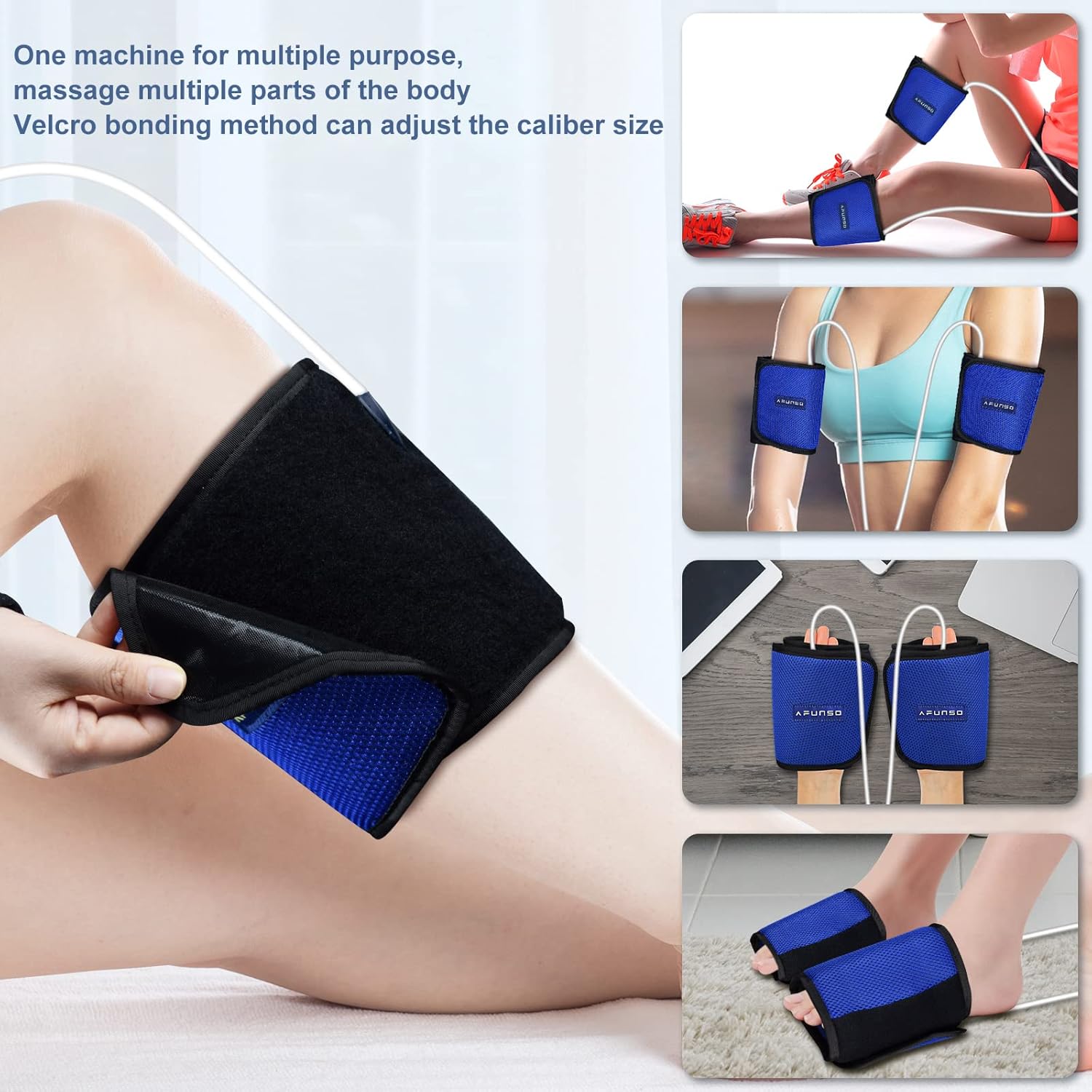 - Envoltura ajustable para diferentes tamaños: Las vendas masajeadoras se ajustan fácilmente con correas de velcro para adaptarse a piernas, brazos, pies y manos. El tamaño máximo de la venda para pantorrillas es de hasta 7.8 pulgadas y el mínimo de 2.8 pulgadas. Puede medir su propia talla para comprobar si le queda bien antes de comprarla.