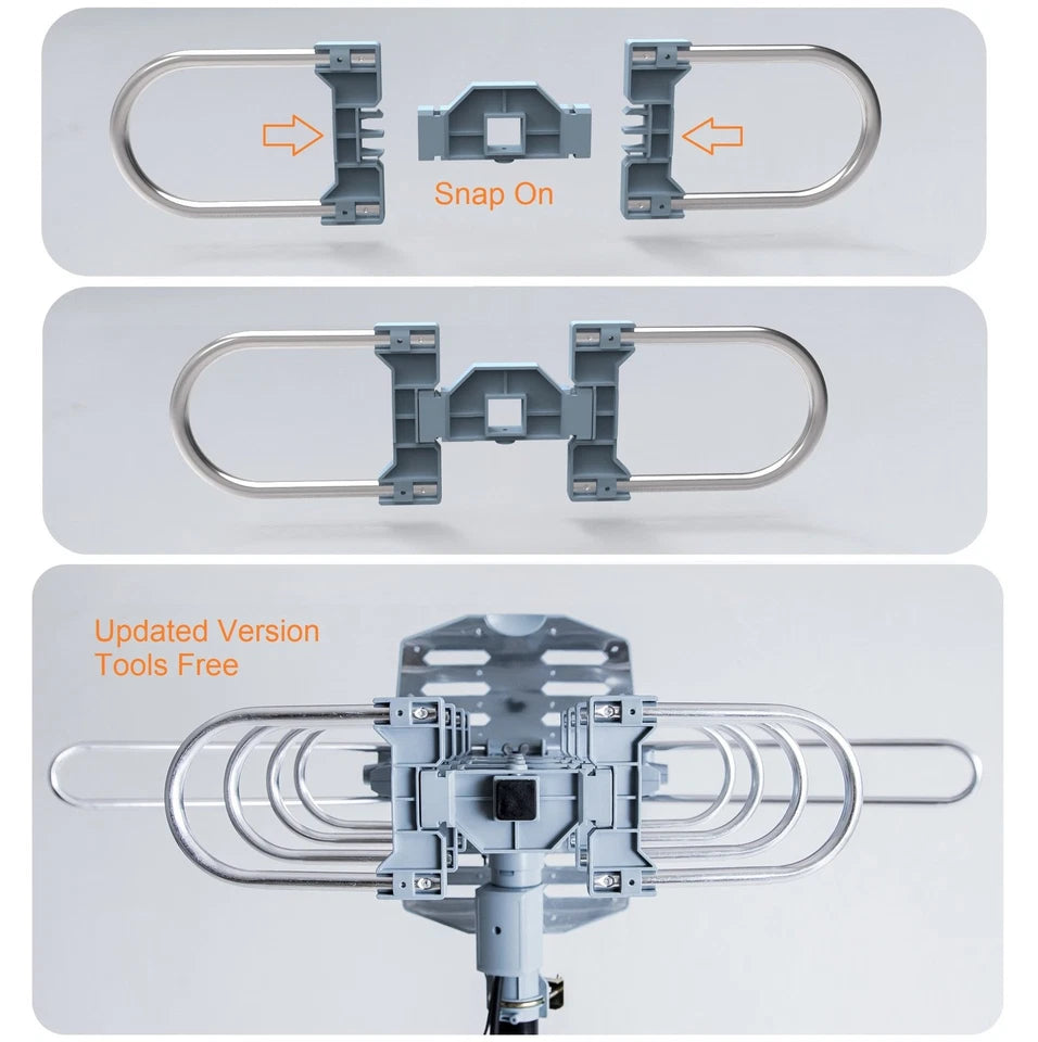 - Instalación sin herramientas, ajuste de los elementos. Viene con un manual de usuario fácil de seguir para que puedas instalar la antena con facilidad. Poste incluido: se monta en el poste en forma de J con antena McDuory. No es necesario preparar uno extra.