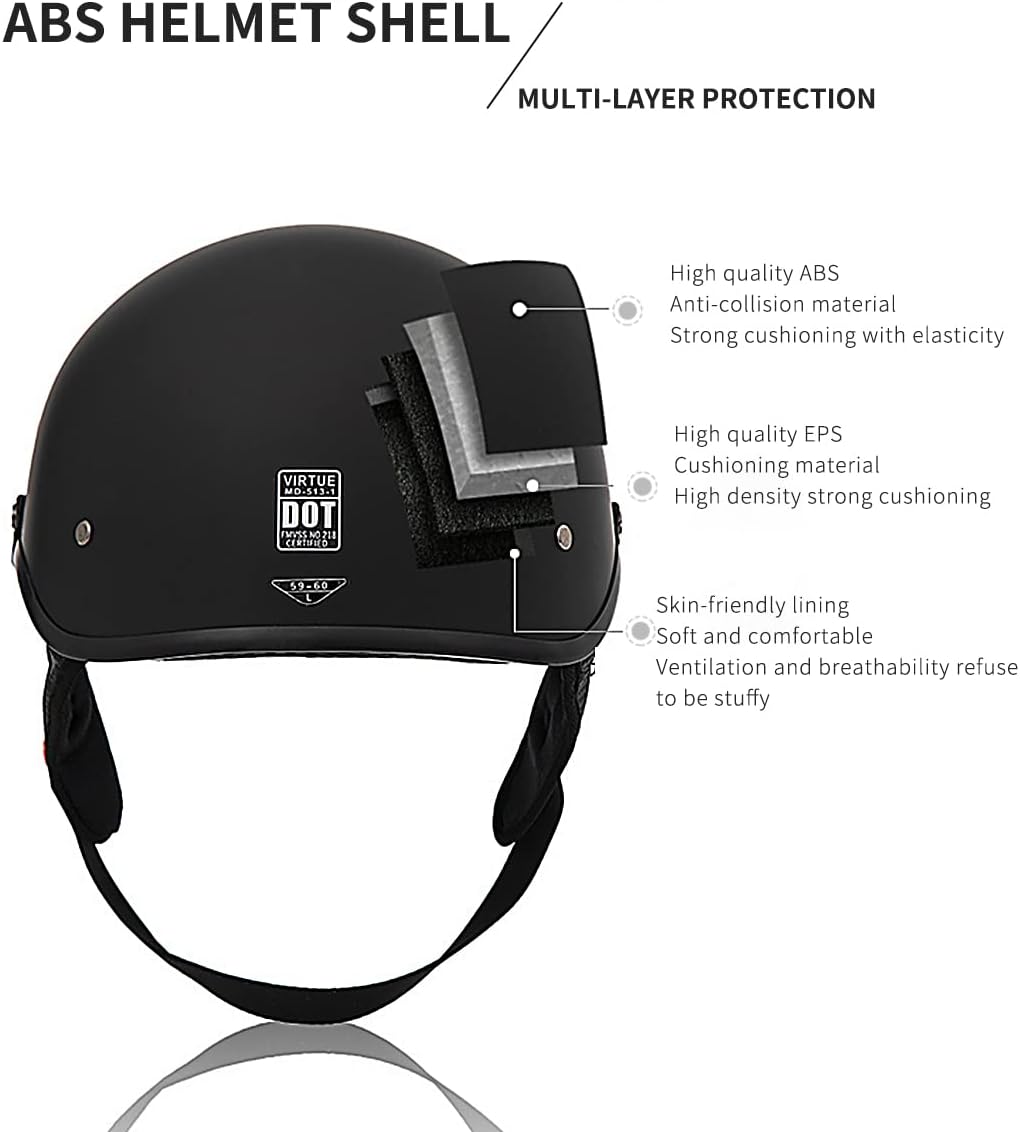 - Pequeño y ligero: cuerpo de casco ligero, úsalo durante mucho tiempo sin cansarte. El medio casco de motocicleta es ideal para motociclismo, ciclismo.