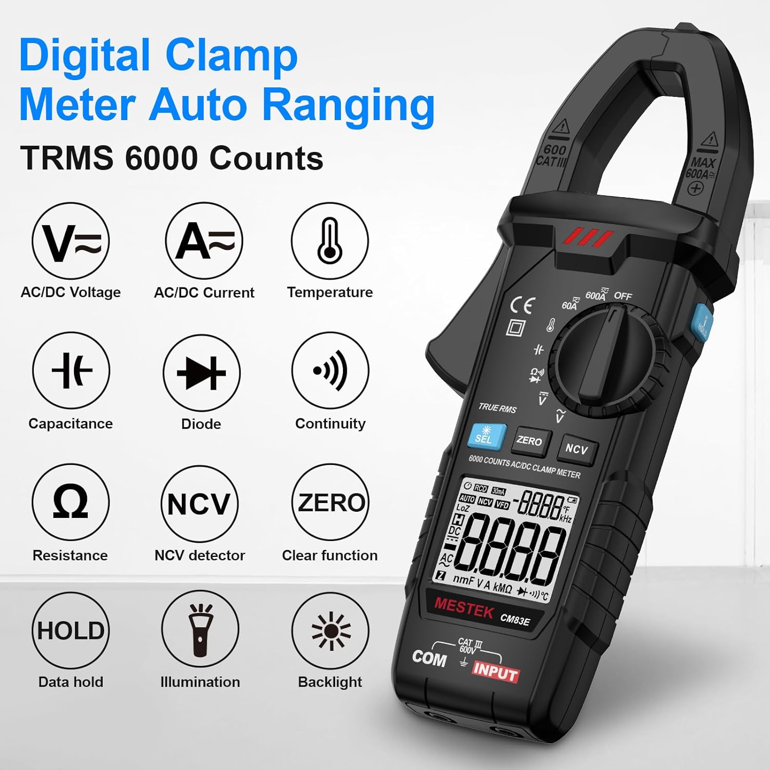 MESTEK Medidor de abrazadera digital multímetro TRMS 6000.