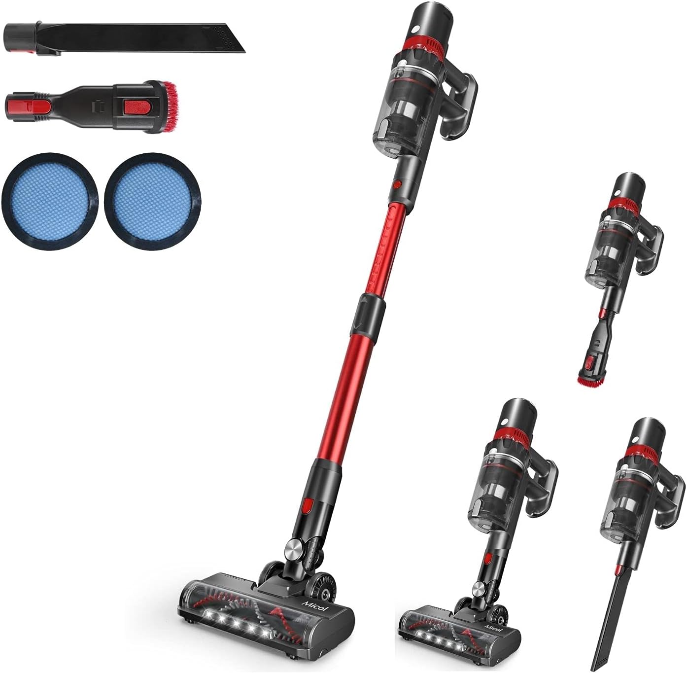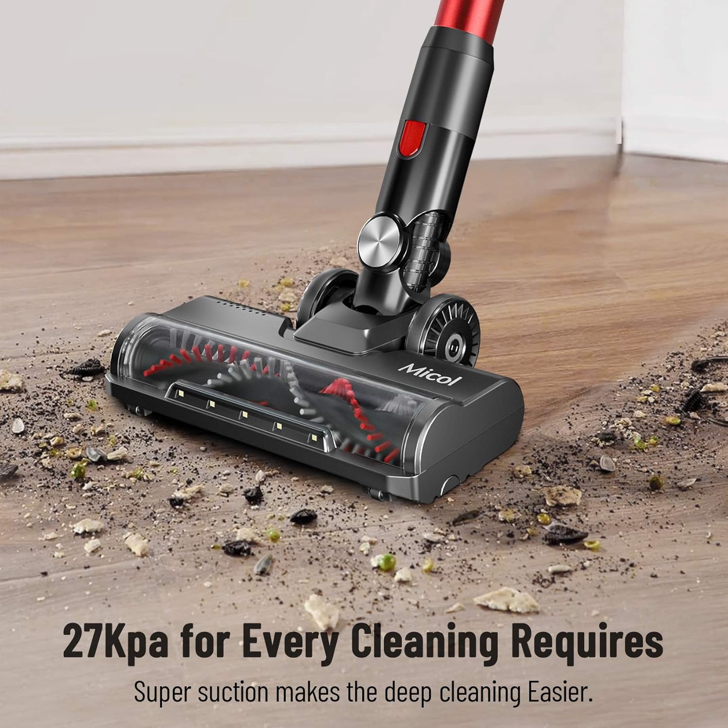 Micol Aspiradora inalámbrica, 27 kpa potente succión 4 en 1 aspiradora con motor sin escobillas de 350 W, hasta 45 minutos máximo tiempo de funcionamiento batería desmontable para el hogar piso duro pelo de mascotas MC021