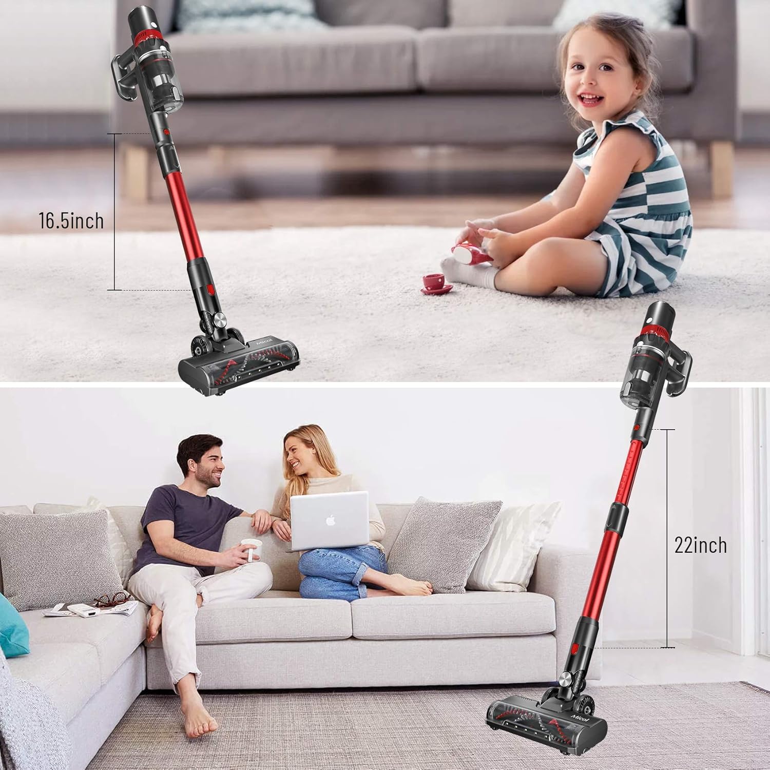 - Motor sin escobillas de 350 W: el motor de aspiradora inalámbrico con 800 horas de vida útil, 5 veces más que el motor cepillado ordinario con 150 horas, proporcionando una alta capacidad de fuerte potencia, levanta el polvo integrado con facilidad, ofrece un rendimiento perfecto de limpieza de alfombras.