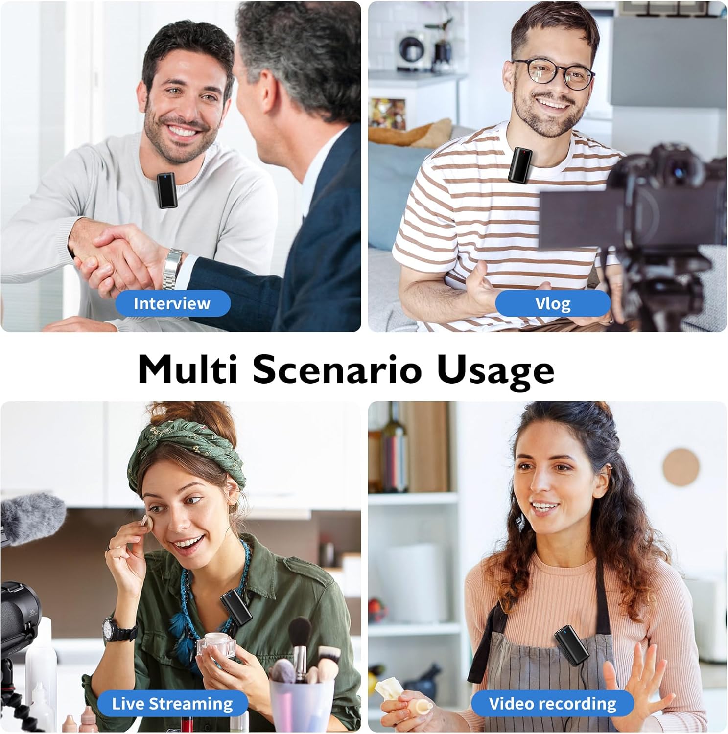- Batería de larga duración de 8 horas: proporciona 8 horas de tiempo de trabajo continuo cuando está completamente cargada. Cada TX y RX tienen un puerto USB-C para carga directa mientras trabaja al mismo tiempo, perfecto para entrevistas externas Video Podcast Vlog y nunca tendrás que preocuparte por la duración de la batería.