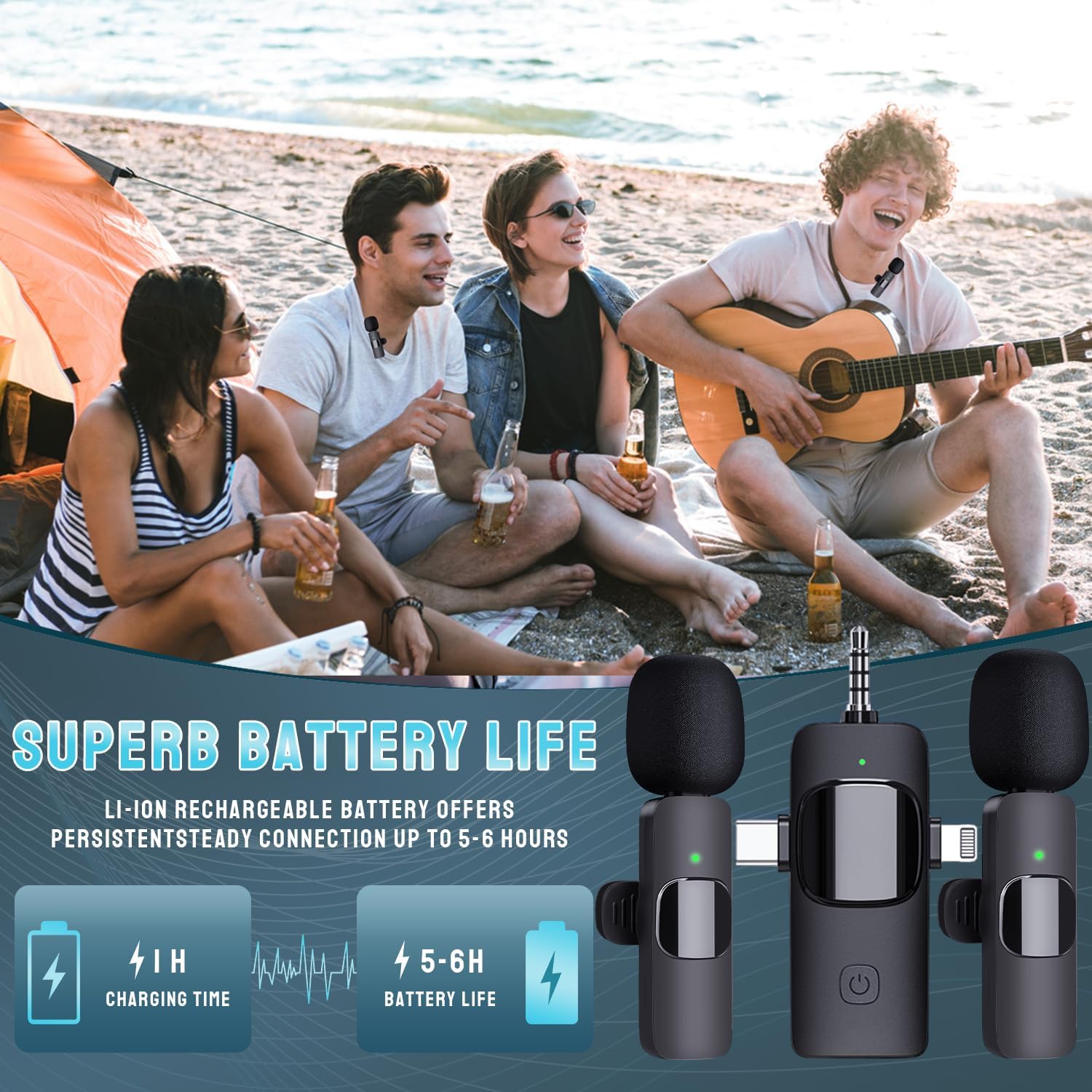 - Plug and Play: ¡Sin Bluetooth ni aplicación! Simplemente conecta el conector Lightning al teléfono, sujeta el mini micrófono a la camisa y ¡funciona en un segundo! Los dos paquetes de micrófonos de solapa permiten que dos personas graben un video juntas, lo que proporciona eficiencia y comodidad para trabajar en equipo. Ideal para vlogs, entrevistas, transmisiones en vivo, YouTube, TikTok, podcasts, Instagram, videotutoriales en línea, grabaciones de canto, etc.