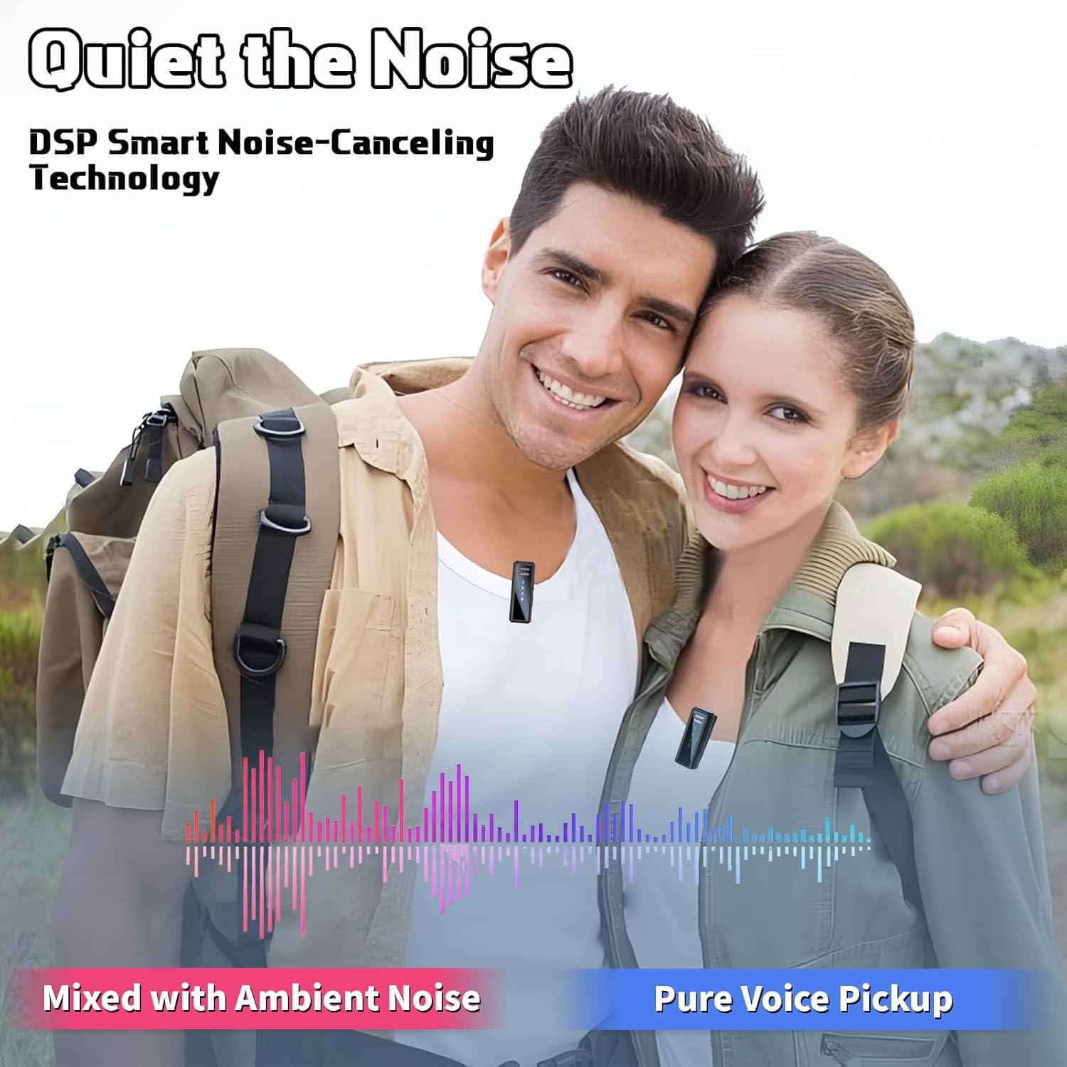 Micrófono Lavalier inalámbrico con cancelación de ruido.
