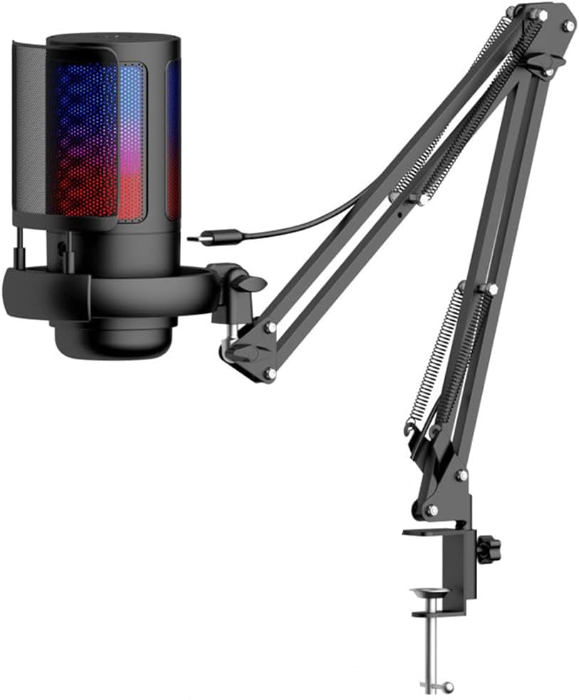 - Luces sinfónicas RGB degradadas: luces RGB cíclicas y degradadas, en línea con tu estética de transmisión en vivo. Te ofrece una experiencia de juego inmersiva y despierta todos tus sentidos. También hay una sensación palpable de seguridad, y cuando el micrófono BBEIYY está apagado, las luces RGB se apagan para que sepas que estás trabajando. Evita accidentes cuando olvides silenciar el micrófono de tu PC para juegos.