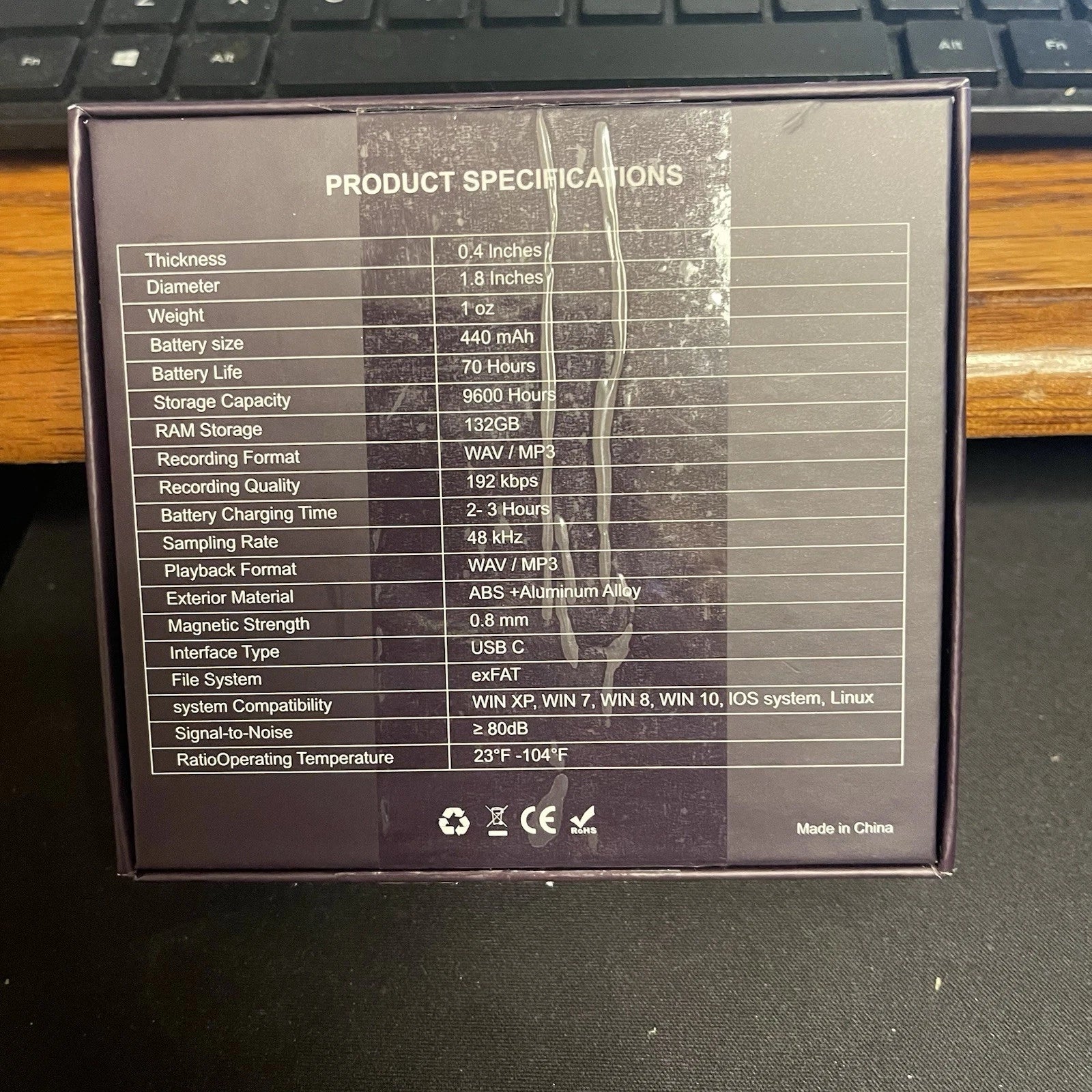Mini grabadora de voz 132 gb, 9600 Horas,440 mAh.