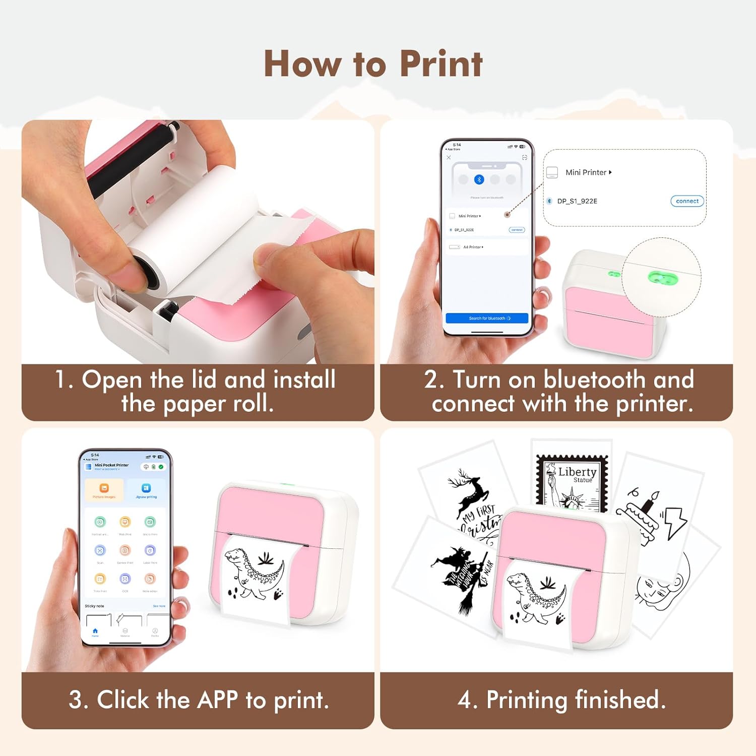- Regalo Ideal- Nuestra impresora de bolsillo tiene una apariencia linda y un diseño de impresión portátil, perfecto para estudiantes, niños y aficionados. Si te gusta tomar selfies y dibujar, no te pierdas nuestra impresora térmica.