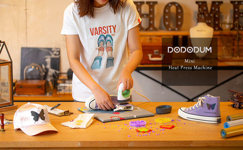- DODODUM La mini prensa de calor fácil de usar es muy adecuada para entusiastas de las manualidades, estudiantes y amas de casa. Sus maravillosas ideas para producir artículos únicos e interesantes se presentarán perfectamente con nuestra mini máquina DODODUM Heat Press.