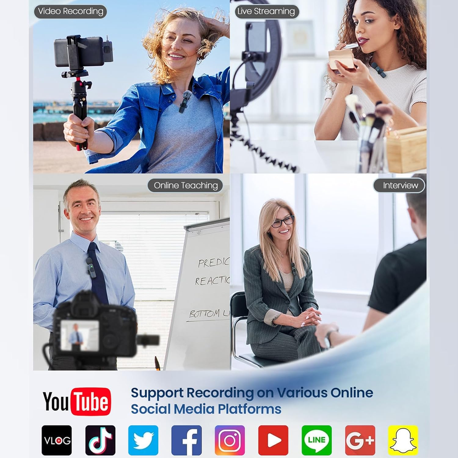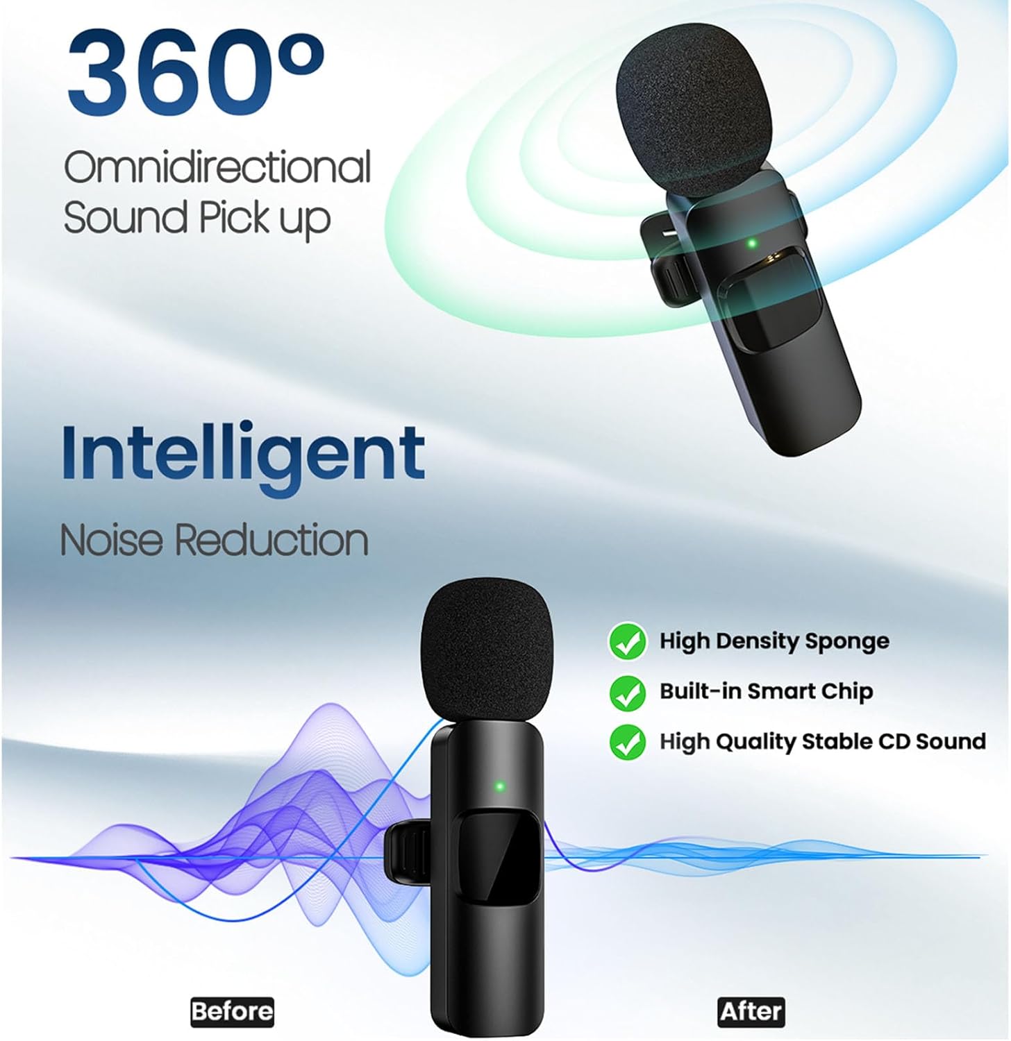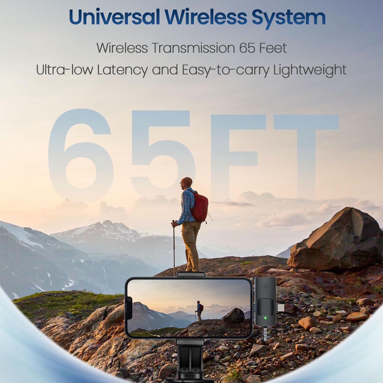 - [Transmisión inalámbrica de largo alcance]: el micrófono inalámbrico está completamente última intervensión de cables, lo que ofrece una señal de audio estable de hasta 65 pies. Puedes sostenerlo a mano o sujetarlo en tu camisa. Con cable de carga tipo C, el receptor y el teléfono se pueden cargar al mismo tiempo.