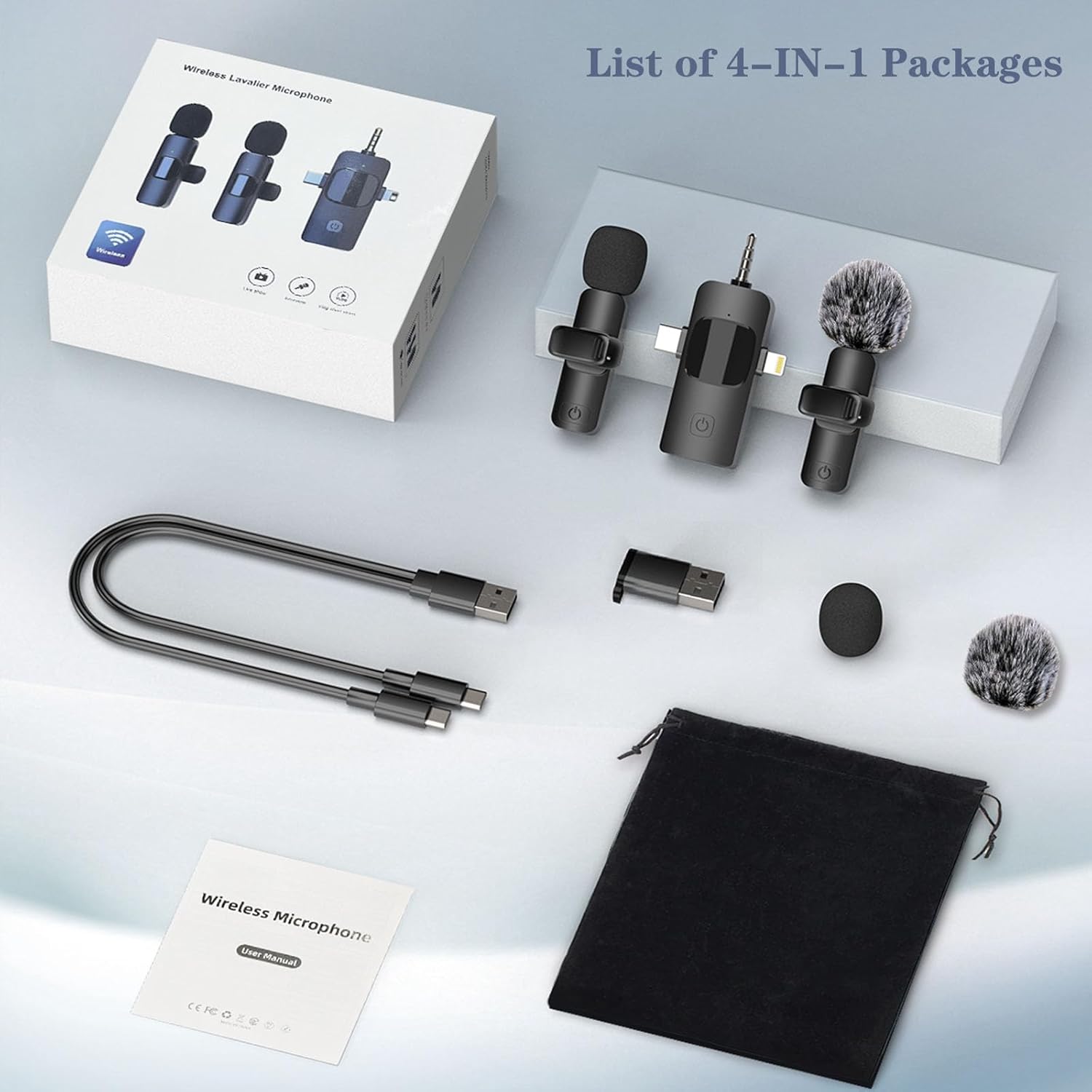 - Compatibilidad: el micrófono inalámbrico actualizado viene con un receptor universal 4 en 1, eliminando la necesidad de reemplazar múltiples interfaces individuales o cables de interfaz. Compatible con teléfonos inteligentes Android, iPhone (incluyendo iPhone 15), iPad, portátiles, computadoras personales, cámara, etc. Como teléfonos Android tipo C (algunos teléfonos requieren OTG para ser habilitados) y portátiles con puerto USB-C, pero también compatible con iPhone 15 (USB C).