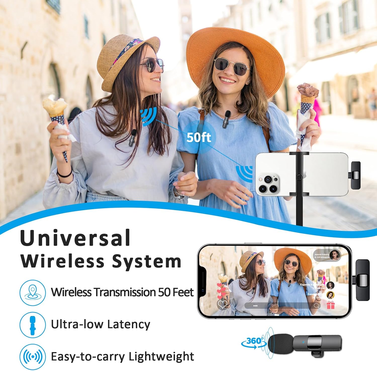 - Fácil conexión: este micrófono inalámbrico Bluetooth es mucho más fácil de configurar. No necesita adaptador, Bluetooth o aplicación. Simplemente coloca el conector en tu dispositivo, luego enciende el micrófono lav, verás que hay una luz verde sólida tanto en el receptor como en el micrófono, lo que significa que las dos partes se conectan correctamente. Entonces puedes iniciar la grabación de audio/video. Nota: apaga el "bluetooth" en tu teléfono celular antes de grabar.