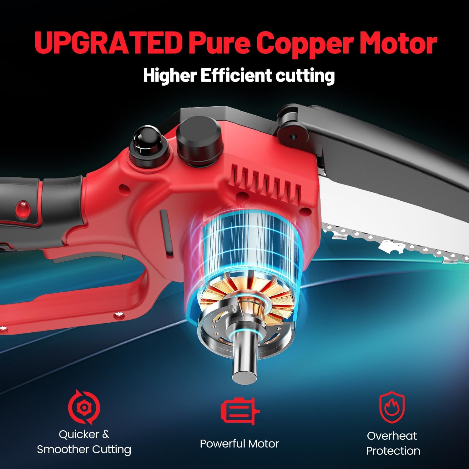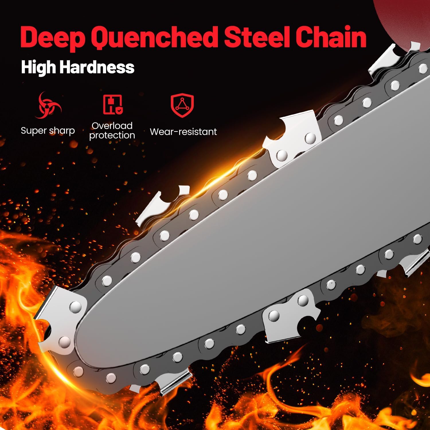 - Corte de alta eficiencia: Alimentado por un motor de cobre puro mejorado, esta pequeña motosierra corta troncos de 6 pulgadas en solo 5 segundos. Equipado con una cadena guía templada de primera calidad, la motosierra ofrece un rendimiento suave, estable y rápido para cortar madera, recortar ramas y jardinería. Ya sea que seas un entusiasta del bricolaje o un profesional, esta motosierra eléctrica inalámbrica hace que el corte sea fácil.