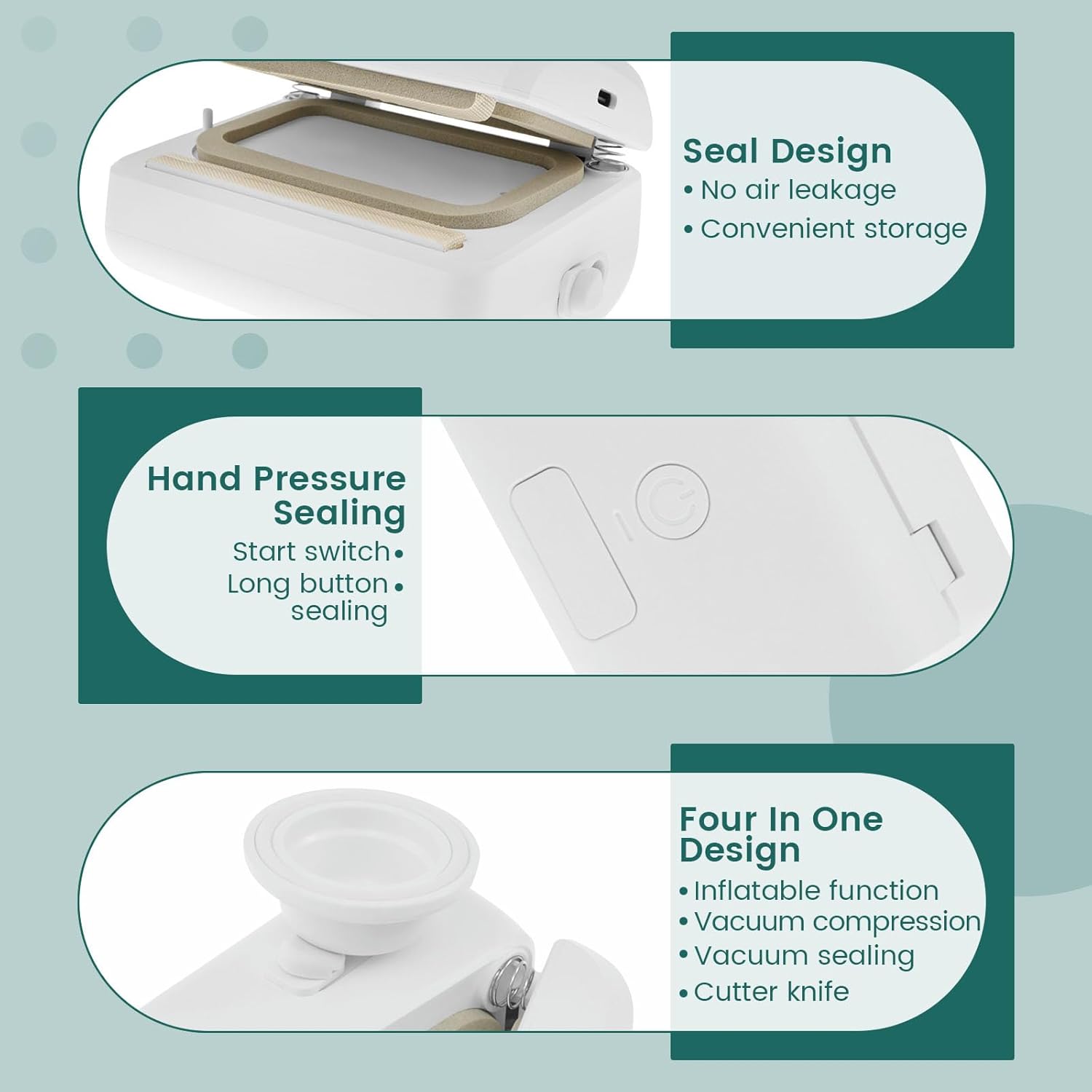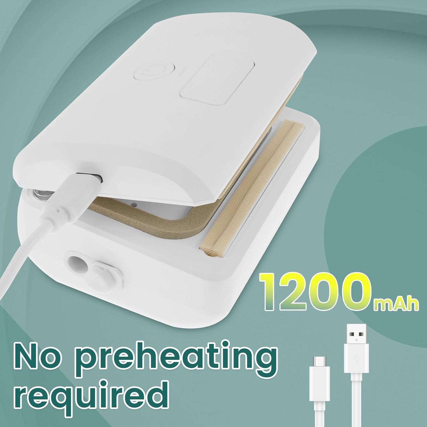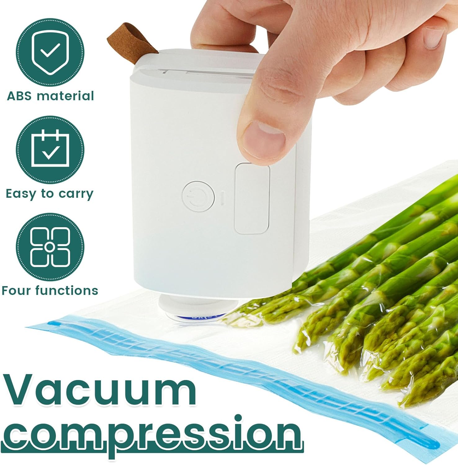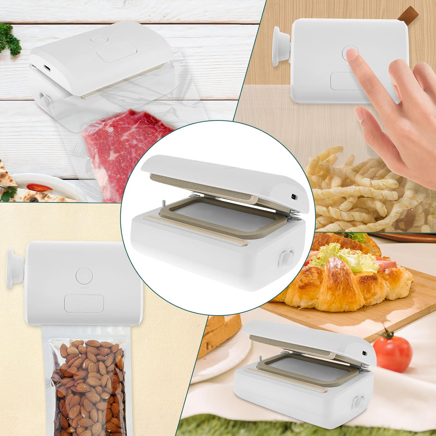 - Fácil de usar, portátil y duradera: Nuestra mini envasadora al vacío es compacta, portátil y no ocupa mucho espacio; puedes usarla en cualquier lugar. Con una batería recargable integrada de 2000 mAh, ofrece hasta 45 minutos de uso continuo tras una carga completa, y permite sellar hasta 250 veces. ¡Sella fácilmente en pocos pasos!