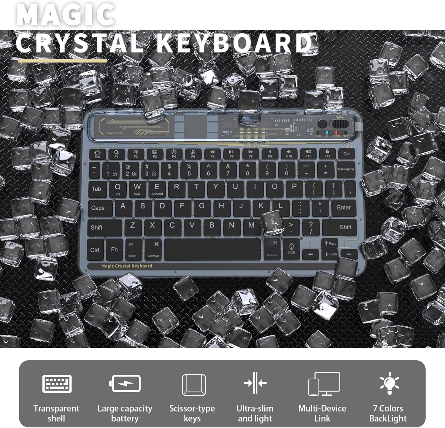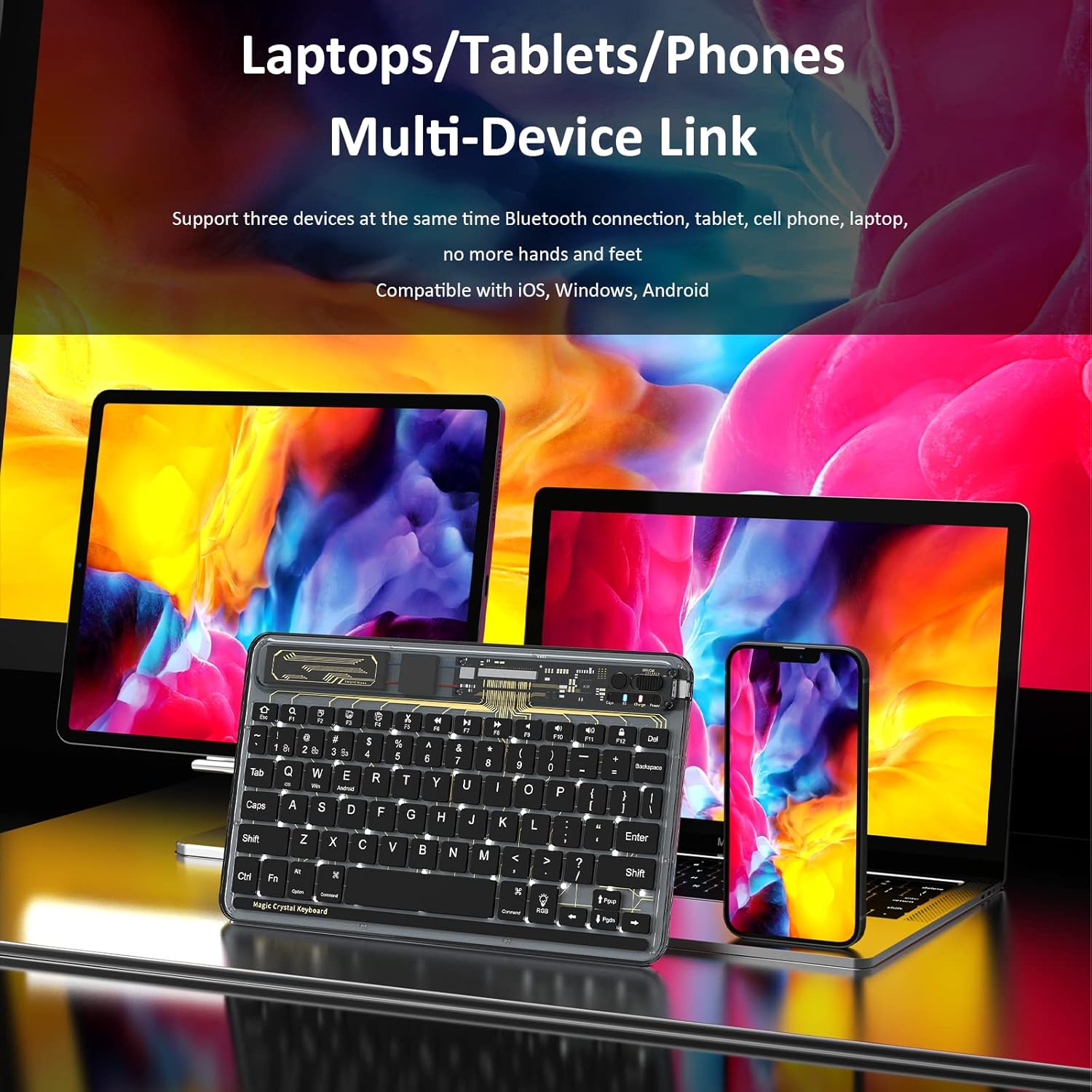 Mini teclado Bluetooth inalámbrico, 7 colores RGB, iOS, Android.