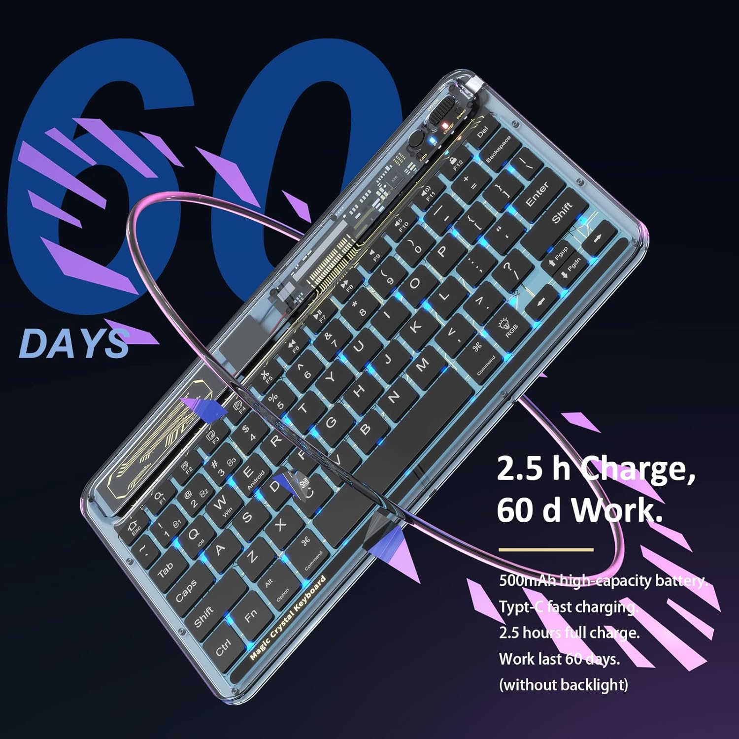 - Carga USB-C: el teclado recargable tipo C para iPad es fácil de usar y se puede cargar en cualquier lugar, en cualquier momento. Este teclado tiene una gran capacidad de batería de 500 mAh, que puede durar hasta 2 días o hasta 2 meses de funcionamiento continuo cuando está completamente cargado (retroiluminación apagada). La batería tiene una vida útil de 2 años y requiere poco o ningún reemplazo de la batería.