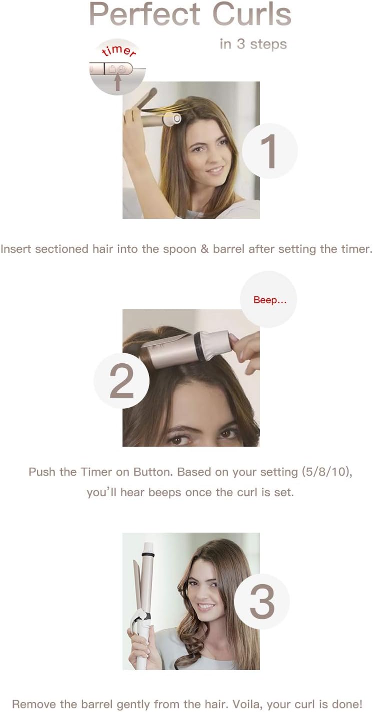 - Configuración de tiempo IC patentada: esta gran varita rizadora aumenta su configuración de tiempo IC patentada, lo que crea sin esfuerzo hermosas ondas sueltas para cada hebra seccionada libre de daños por sobrecalentamiento de acuerdo con las diferentes condiciones del cabello. NOTA: Este rizador de pelo de hierro caliente gira, pero no es un rizador automático