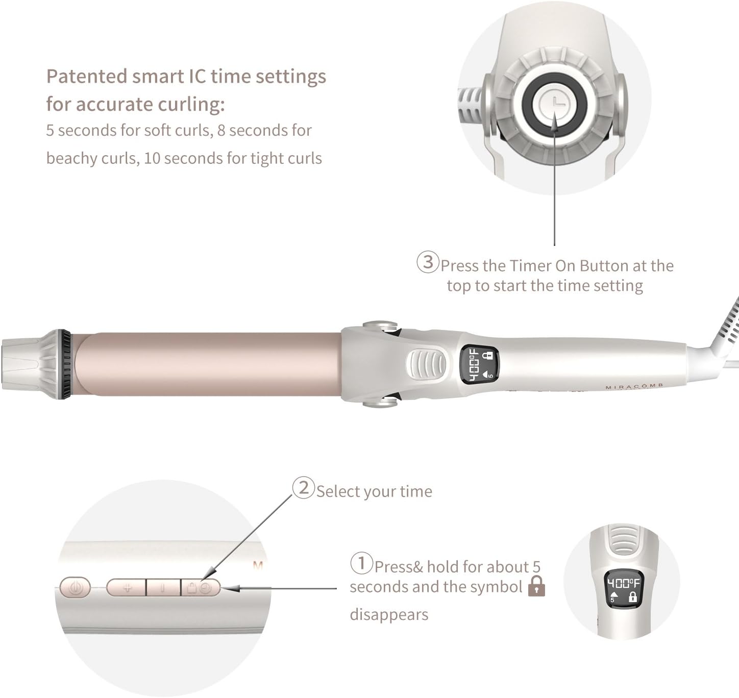 MIRACOMB Rizador de pelo de cerámica, temporizador inteligente.