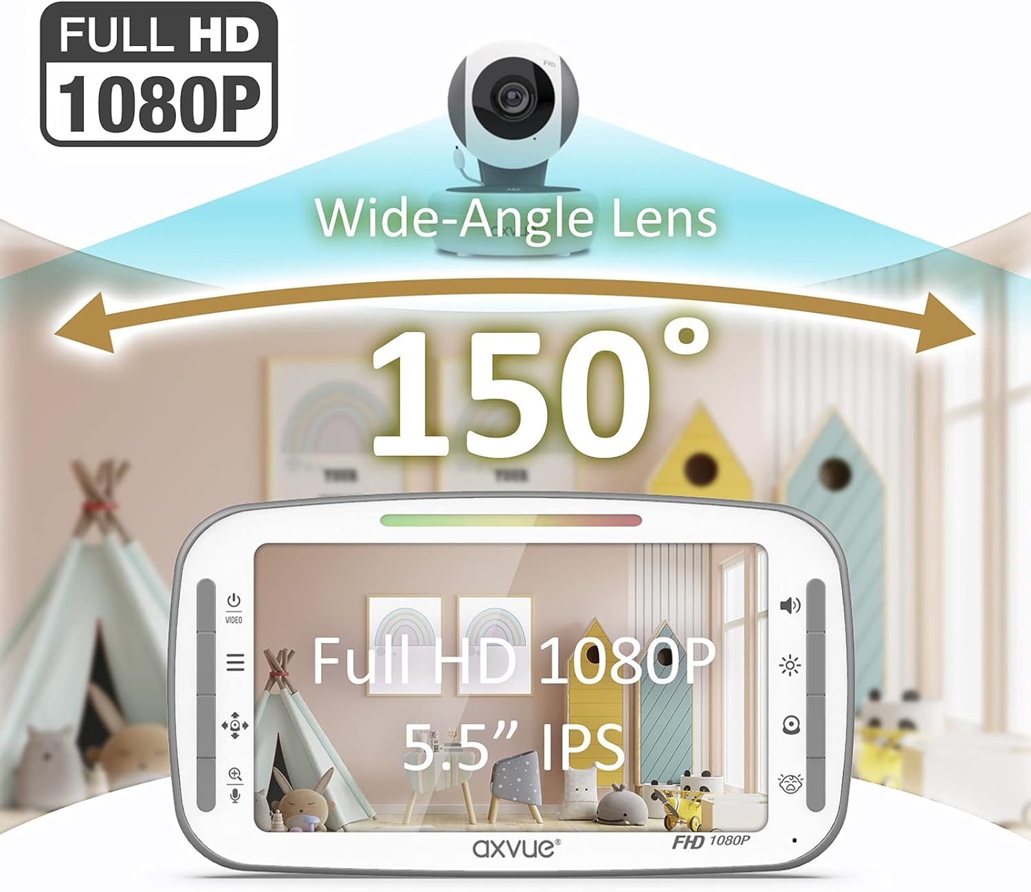 Monitor de video para bebé, Full HD de 1080P, monitor IPS de 5.5".