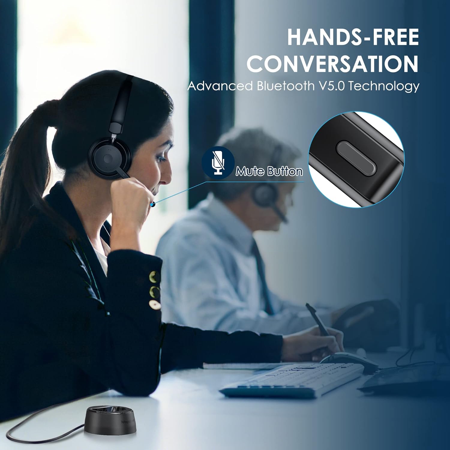 - Este auricular Bluetooth viene con un dongle USB en el paquete, puedes utilizar nuestros auriculares Bluetooth en una computadora sin función Bluetooth, simplemente conecta el dongle USB a tu PC, enciende los auriculares Bluetooth, se emparejarán automáticamente. Perfecto para centros de llamadas, oficinas, trabajo remoto, clases en línea, Skype, Zoom, Google Meetings y mucho más.